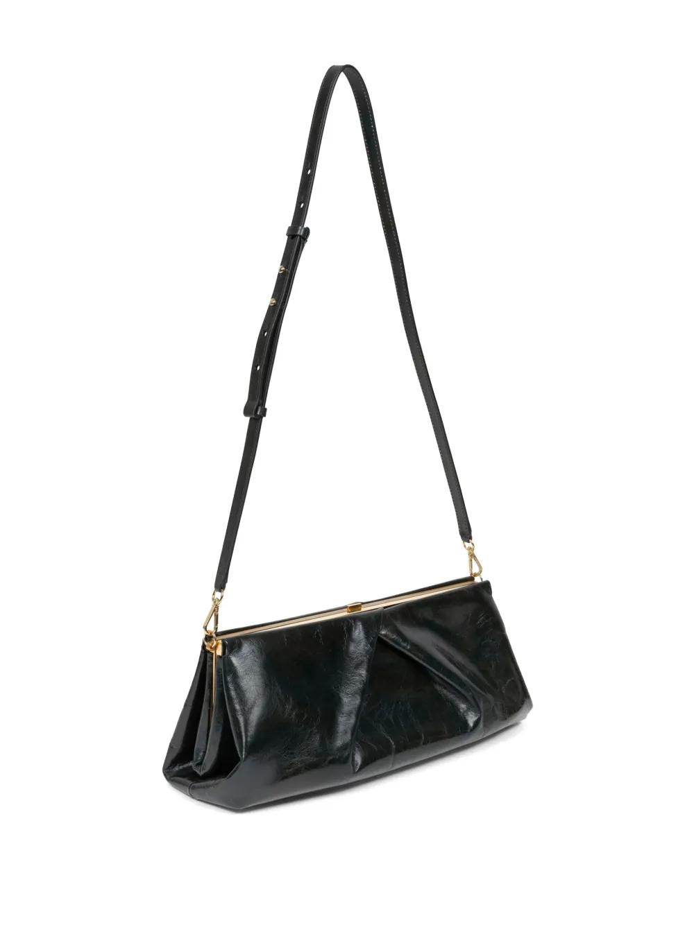 black leather main compartment adjustable detachable shoulder strap gold-tone hardware
