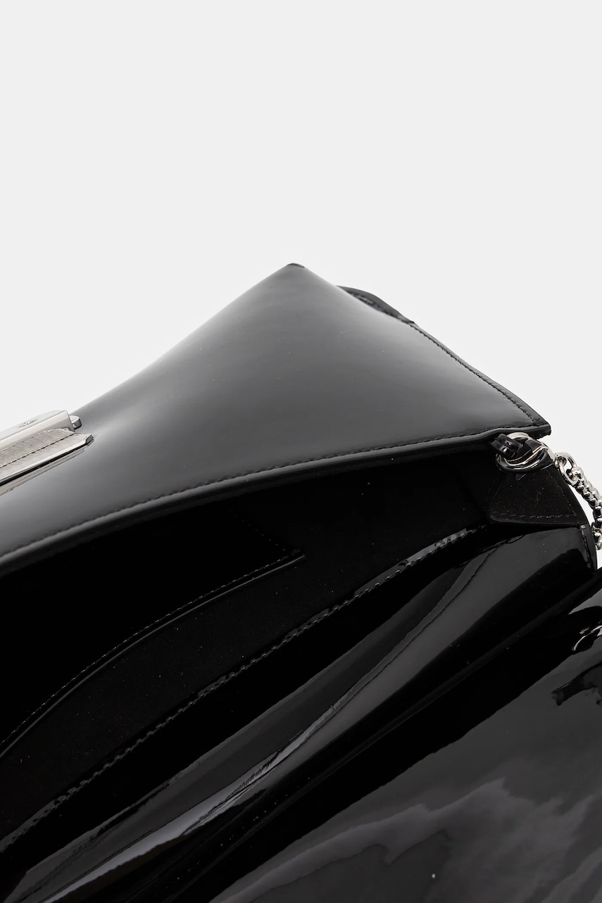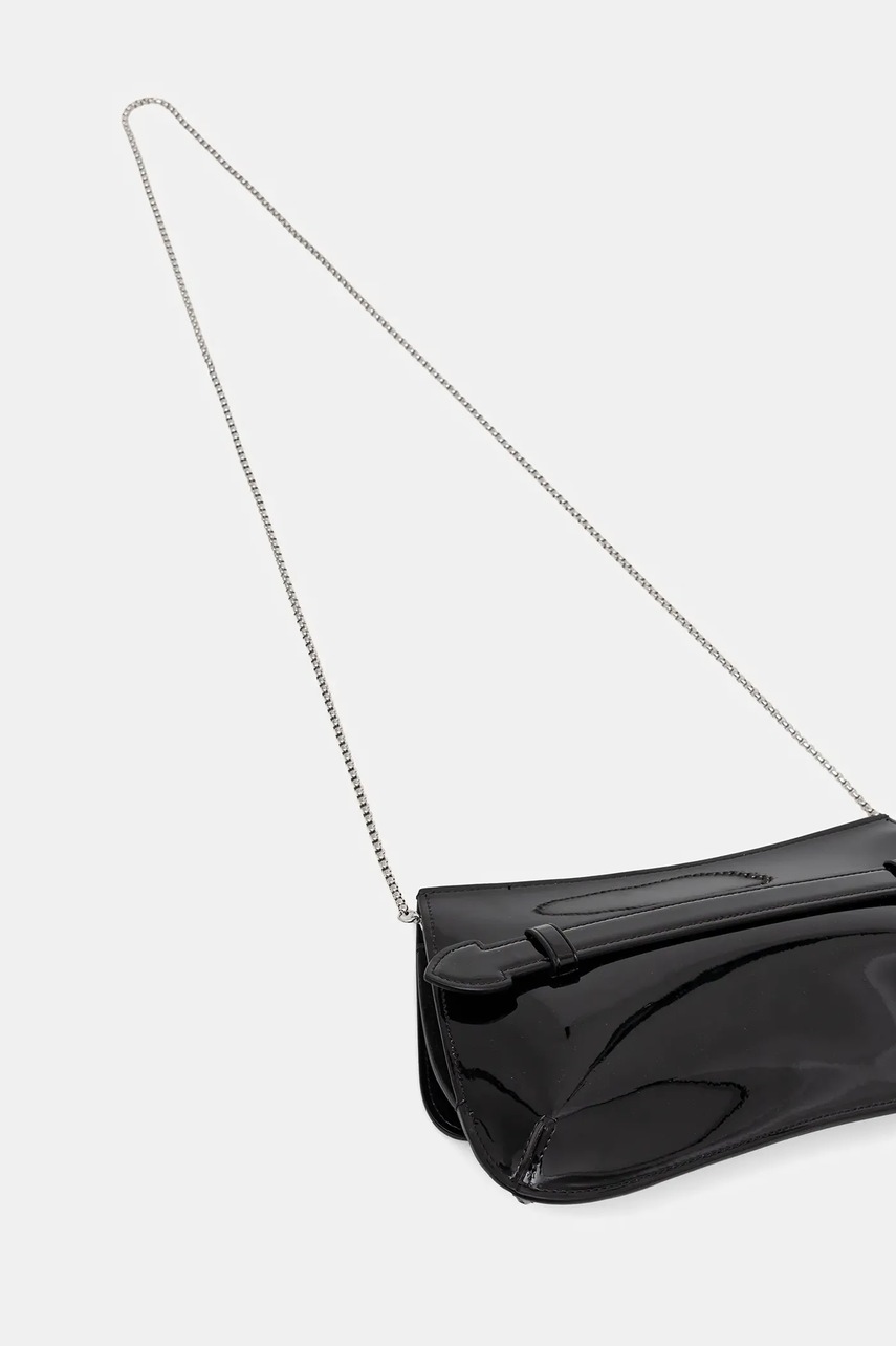 - Klapa zapinana na zatrzask. - Posiada uchwyt i odpinany pasek bez regulacji. - Nie mieści formatu A4. - Posiada przegrodę na kartę. - Długość dopinanego paska: 103 cm. - Głębokość: 4 cm. - Wysokość: 15 cm. - Szerokość u podstawy: 26 cm.