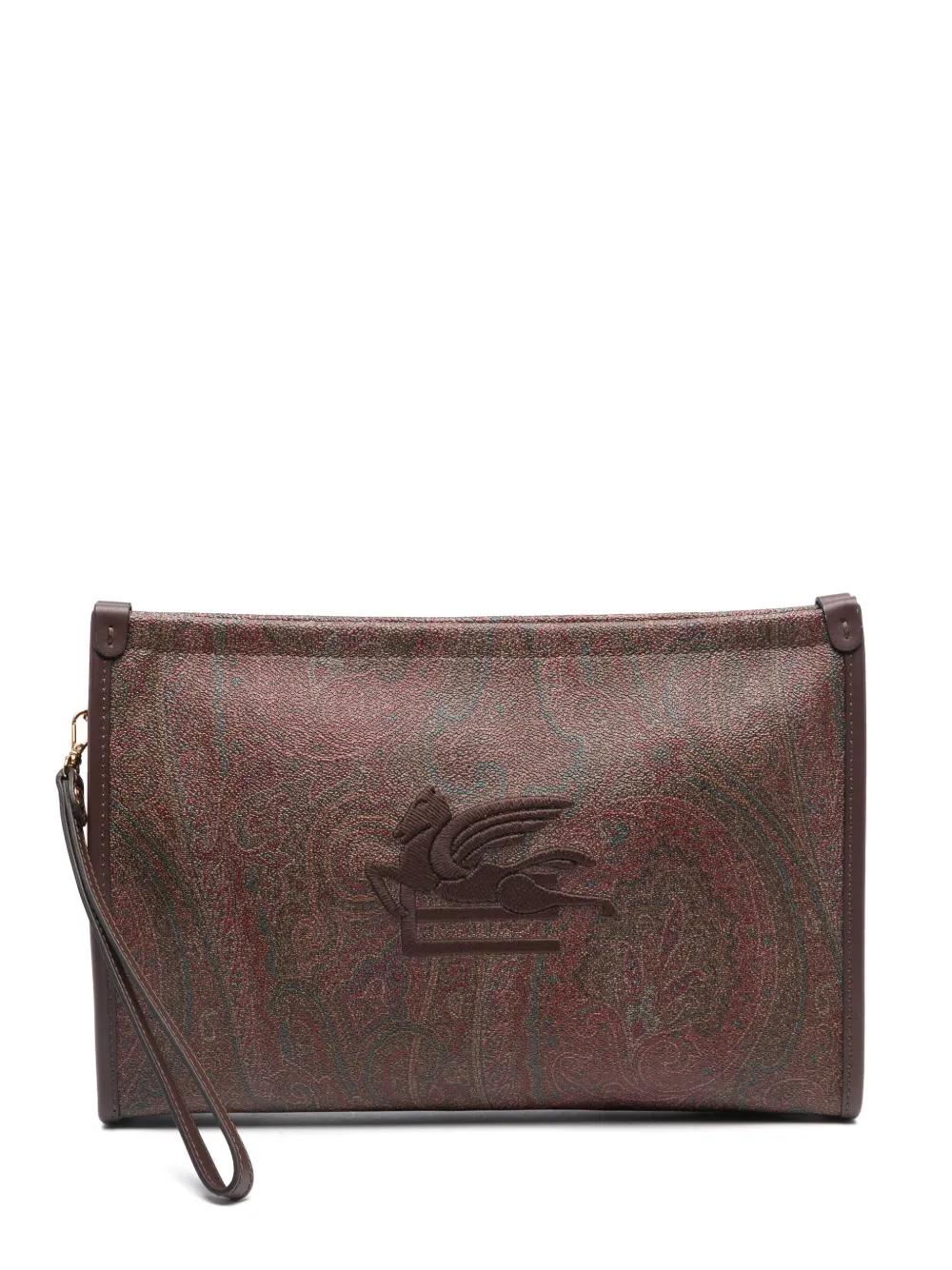 brown, multicolour canvas rectangle body all-over paisley print leather trim branded zip puller signature Pegaso motif main compartment internal patch pocket internal logo patch contrast lining gold-tone hardware top zip fastening This piece comes complete with a protective dust bag.