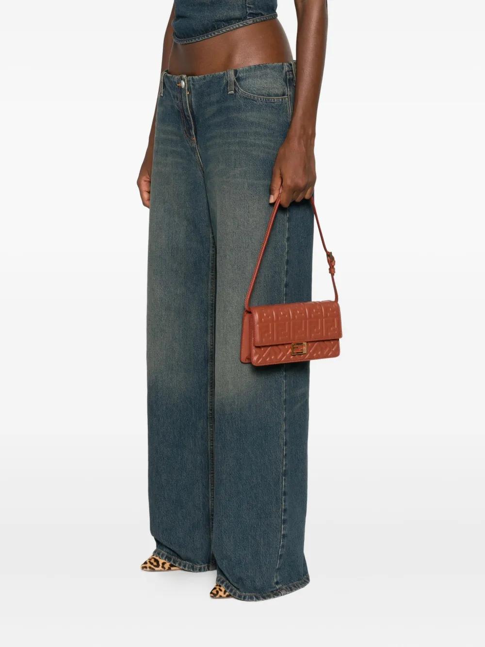 sienna brown calf leather quilted texture logo plaque chain strap embossed FF motif