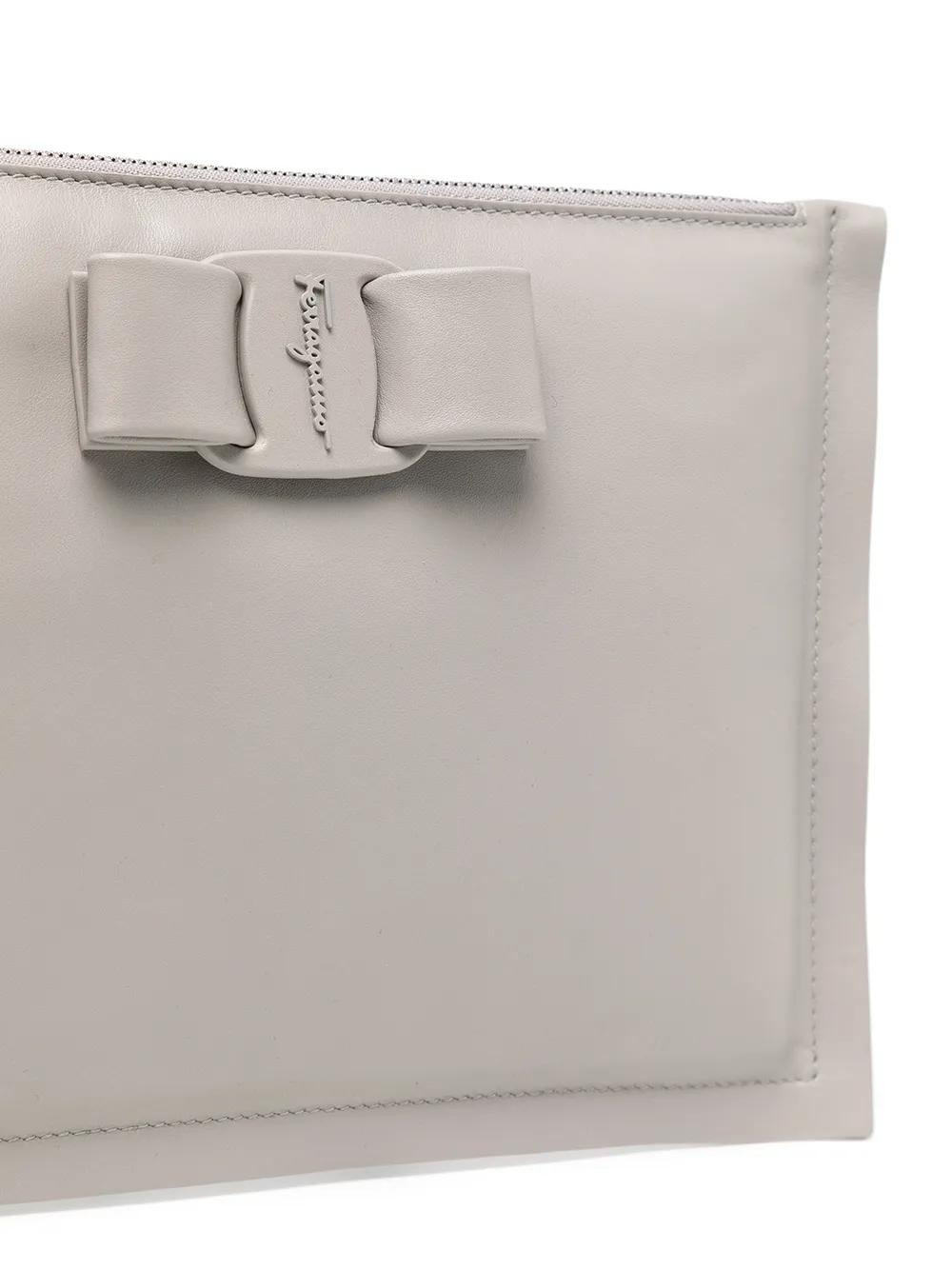 grey calf leather internal logo patch bow detailing logo plaque top zip fastening main compartment