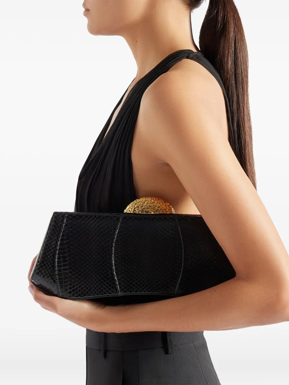 black Elaphe Carinata skin metal closure detachable chain strap This item comes from our partner boutiques in a variety of countries and cannot be shipped outside its region (either US, UAE, or the EU & UK). Please check the country of origin in the Shipping & Free Returns tab or your Shopping Bag to make sure it can be delivered to your location.