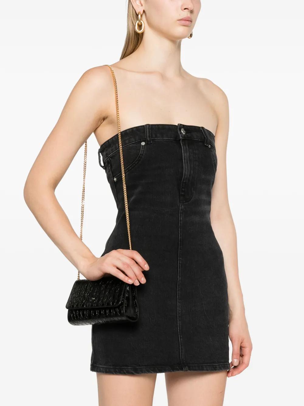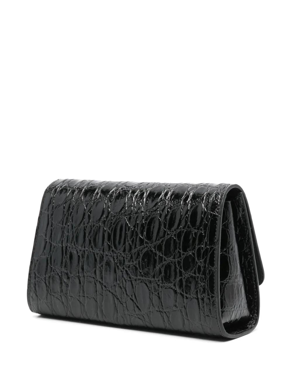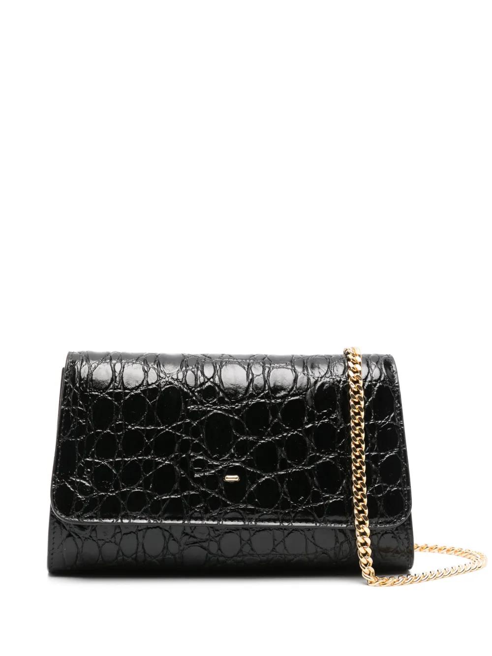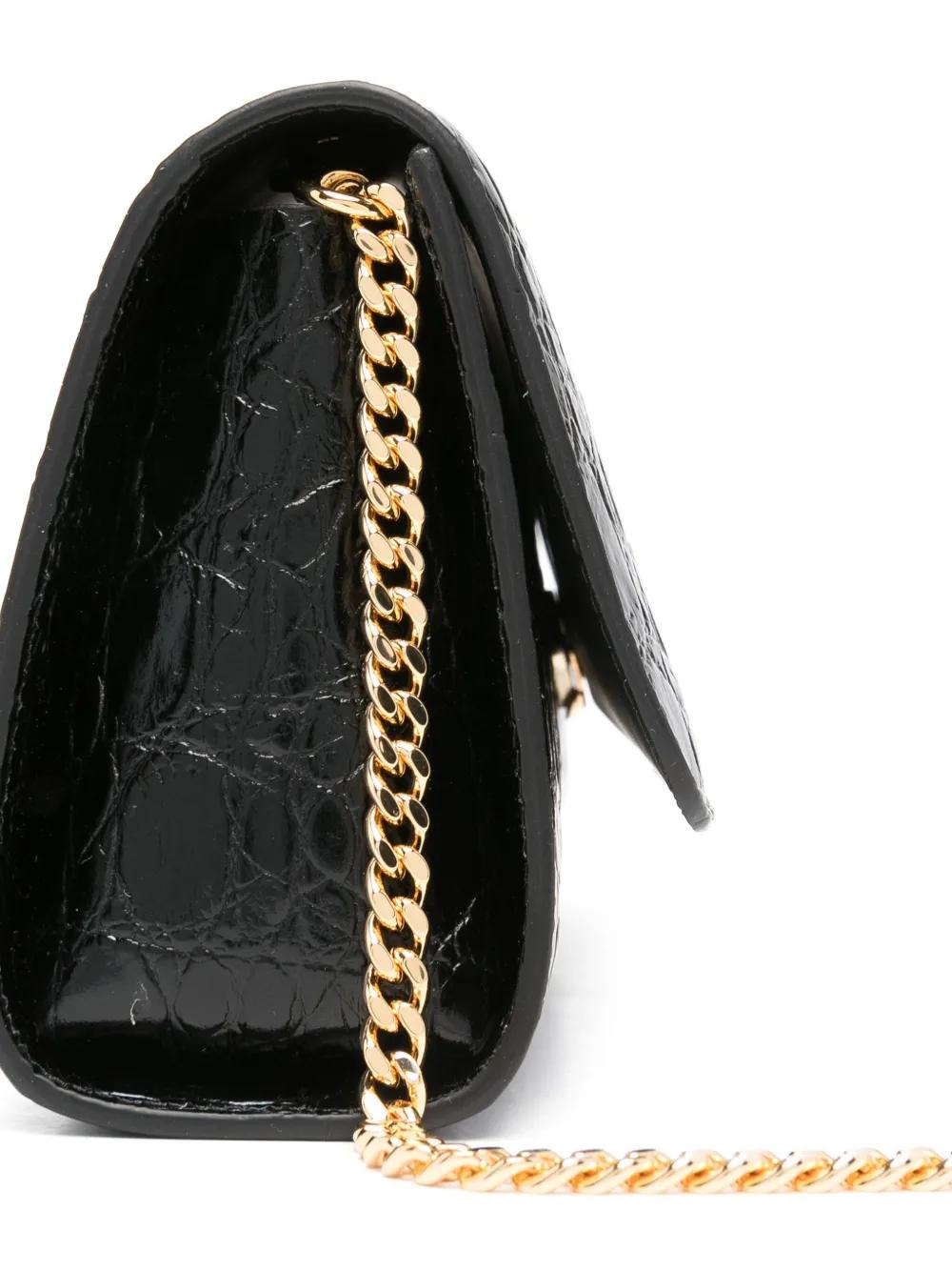 black calf leather embossed crocodile effect foldover top detachable chain-link shoulder strap internal card slots internal logo stamp full lining gold-tone hardware concealed magnetic fastening This piece comes complete with a protective dust bag.
