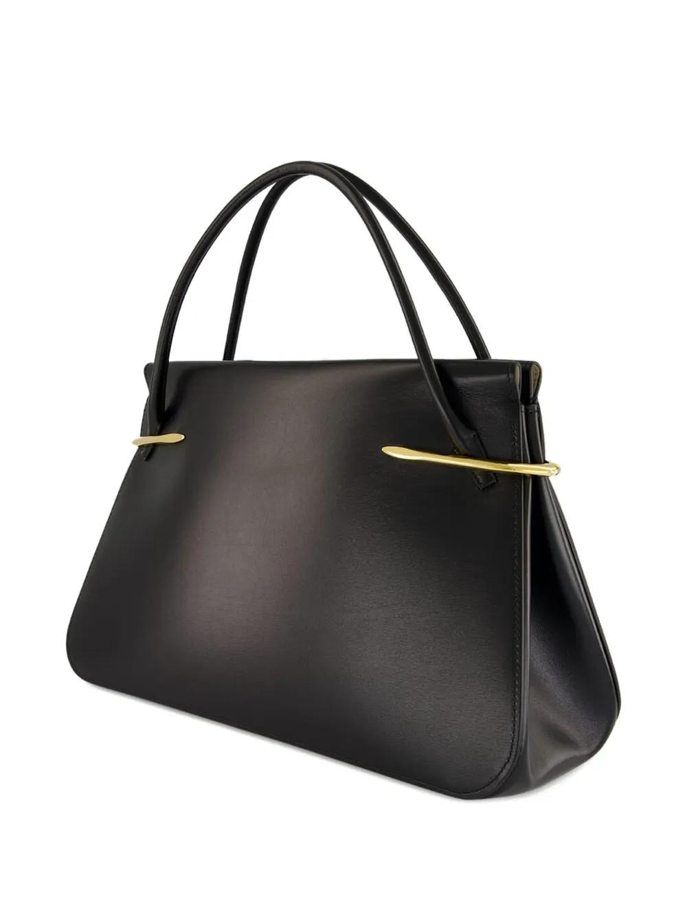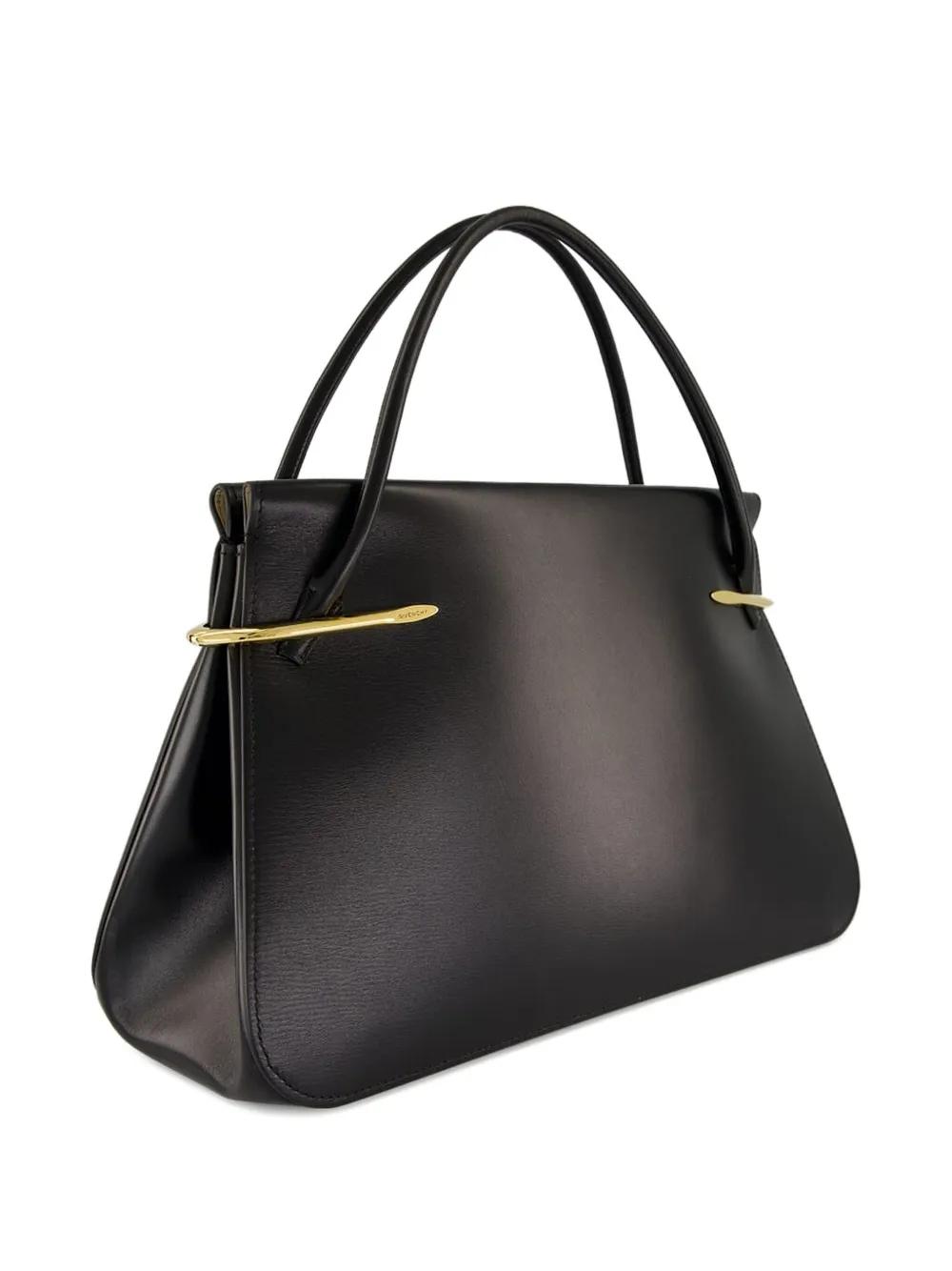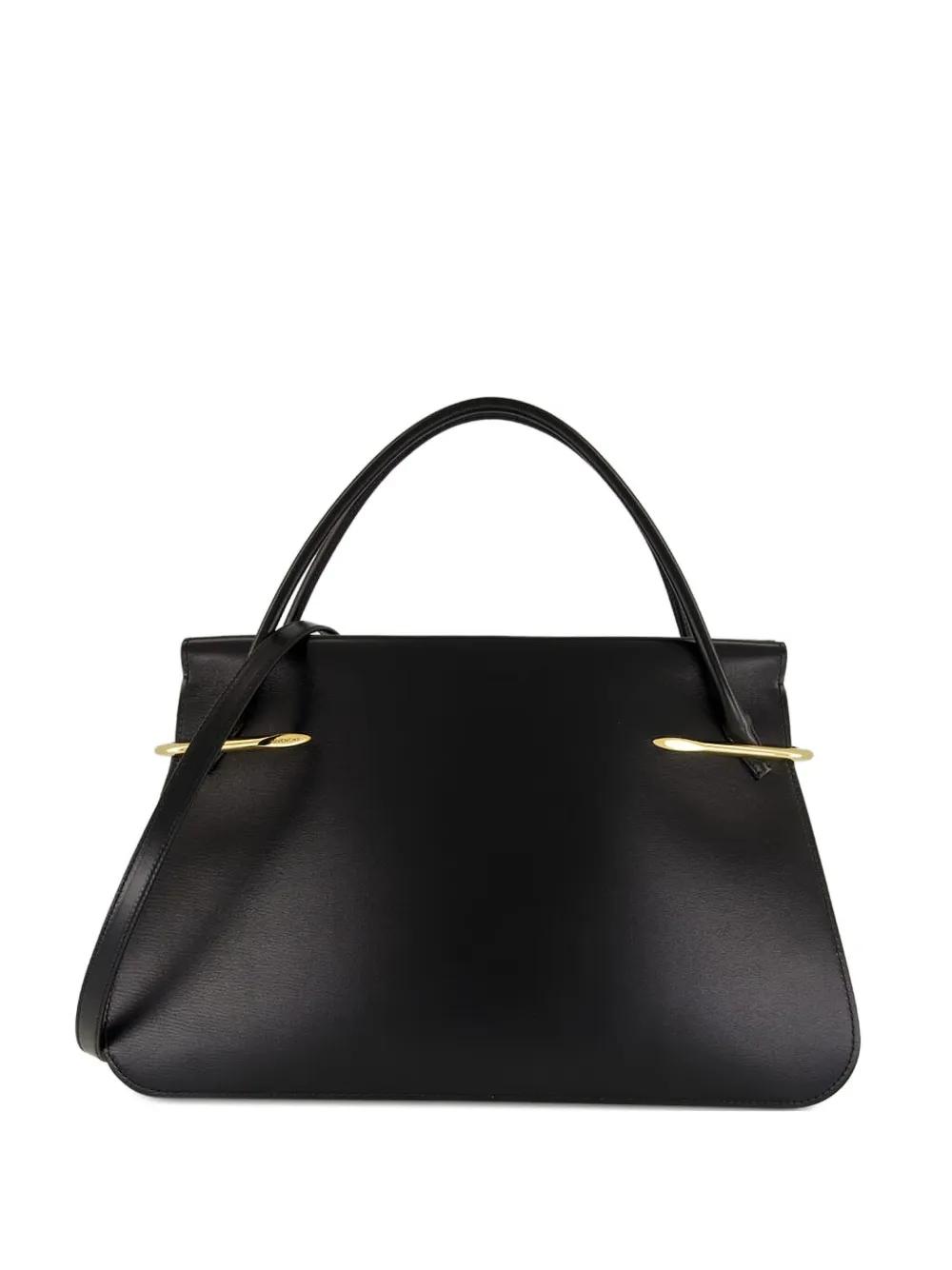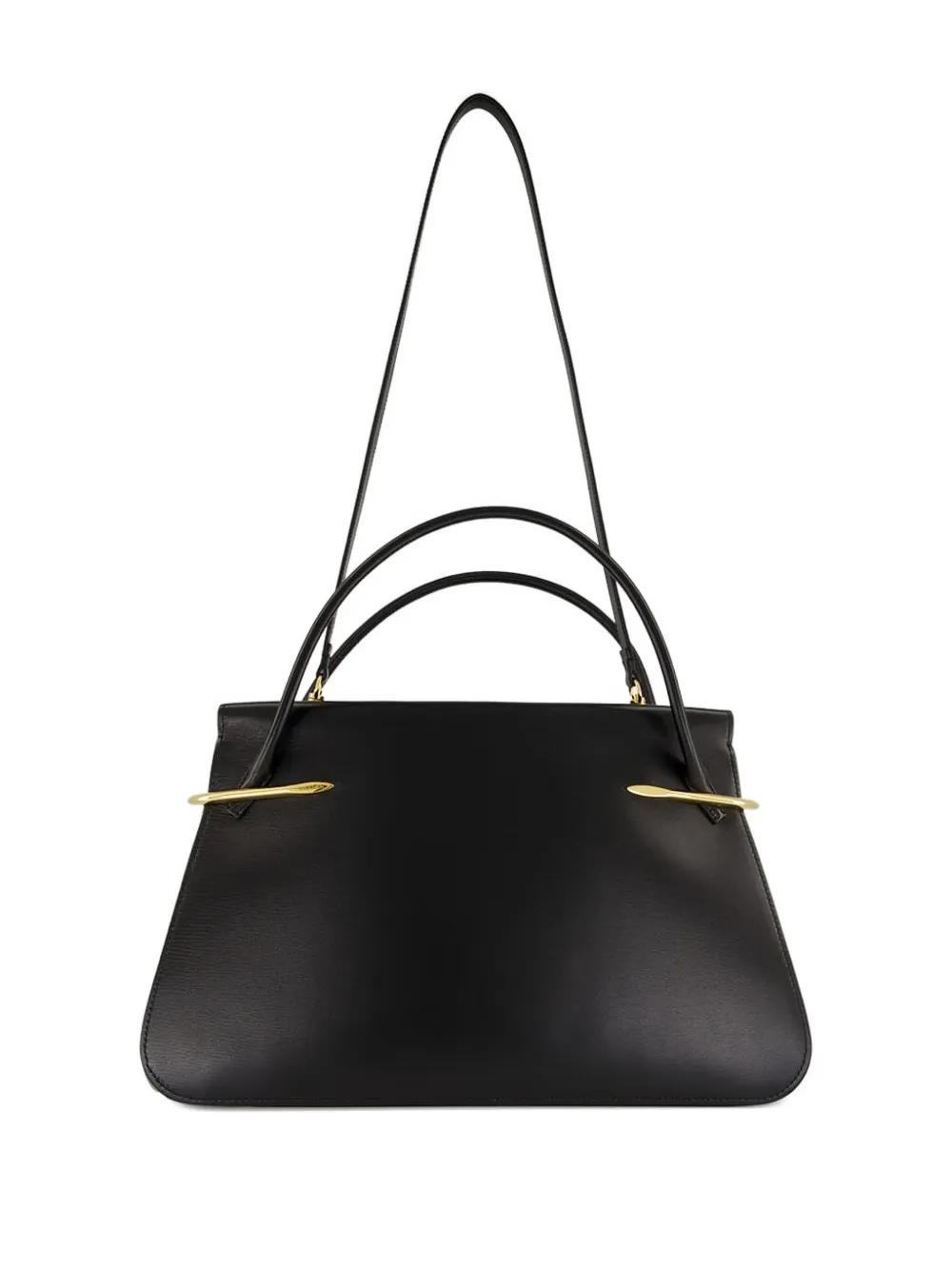 black leather top handles gold-tone hardware shoulder strap main compartment