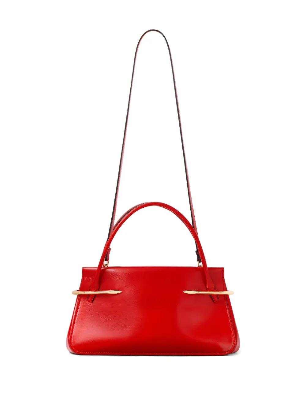 red calf leather two top handles gold-tone hardware zip fastening internal slip pocket