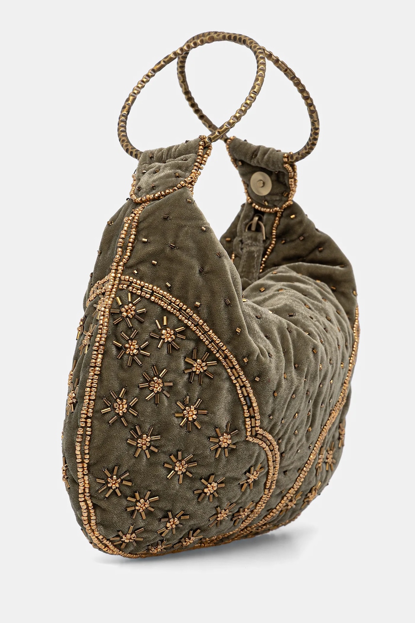 - Zapięcie na suwak. - Zapięcie na zatrzask. - Wewnętrzna, wsuwana kieszeń, która ułatwia bezpieczne przechowywanie telefonu lub innych drobiazgów. - Model z ozdobną aplikacją. - Torebka do noszenia w ręku. - Dołączony tekstylny worek zabezpiecza produkt przed kurzem. - Długość uchwytów: 12 cm. - Głębokość: 14 cm. - Wysokość: 22 cm. - Szerokość u podstawy: 23 cm.