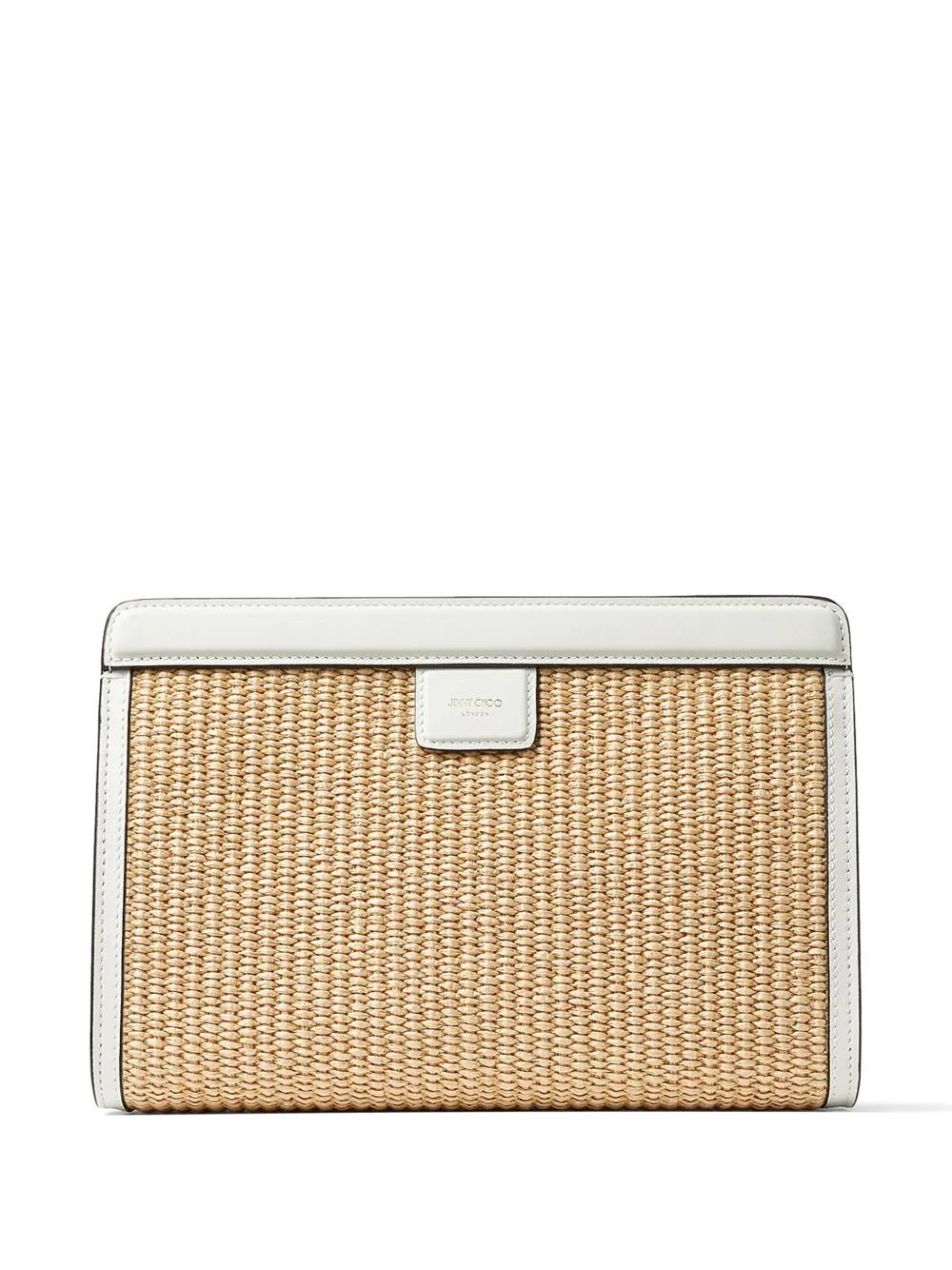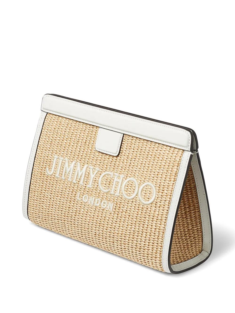 Jimmy Choo Avenue logo-embroidered woven clutch - Neutrals