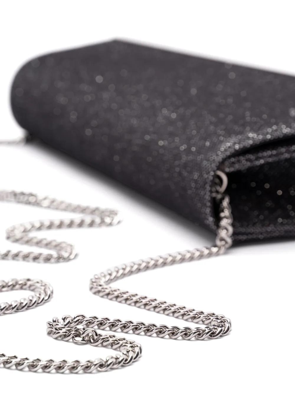 black glitter detailing foldover top with press-stud fastening detachable chain-link shoulder strap engraved logo main compartment internal card slots debossed internal logo full lining