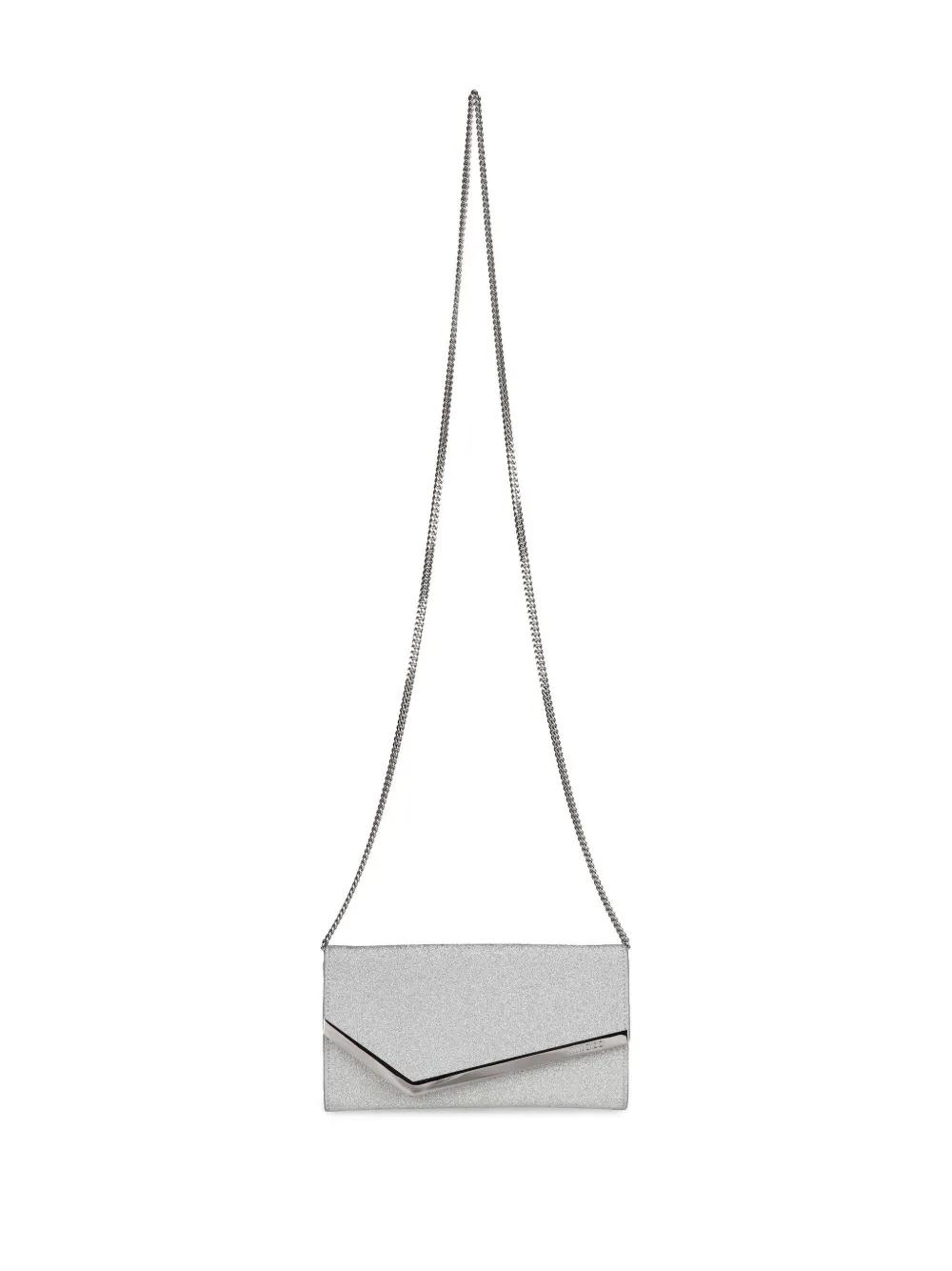silver-tone calf leather/brass glitter detailing engraved logo asymmetric design detachable chain-link shoulder strap foldover top with magnetic fastening main compartment internal card slots internal logo stamp