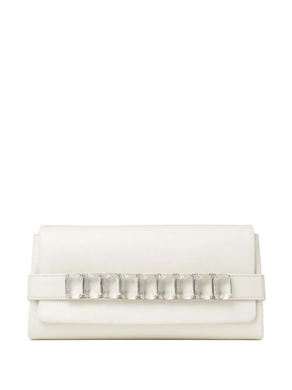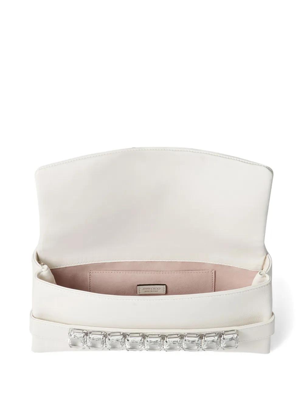 white front flap closure detachable chain-link shoulder strap internal patch pocket crystal embellishment