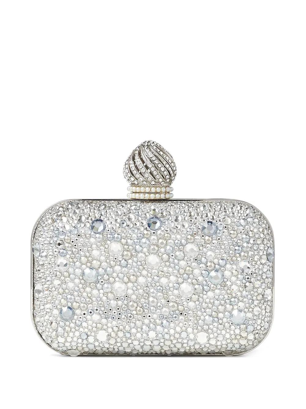 silver-tone goatskin crystal embellishment silver-tone hardware clasp fastening main compartment
