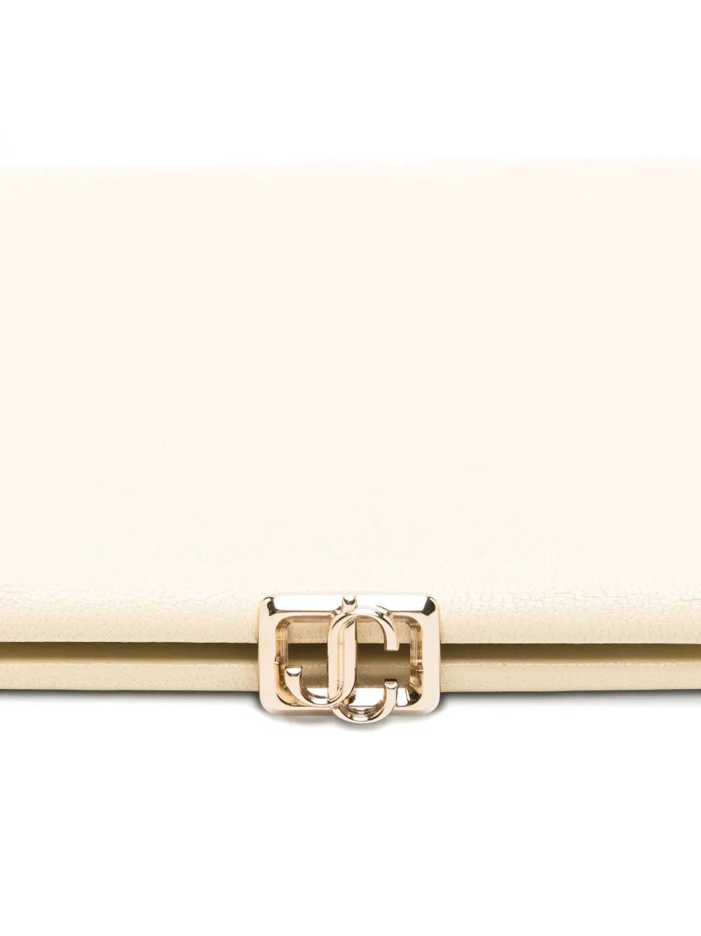 off-white leather construction gold-tone clasp chain strap rectangular shape curved silhouette