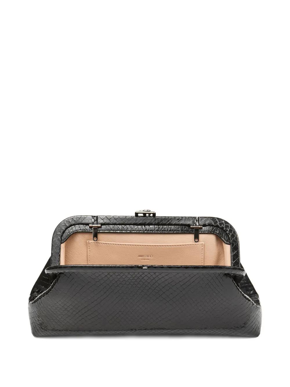 Jimmy Choo Skylar snake-printed leather clutch bag - Black