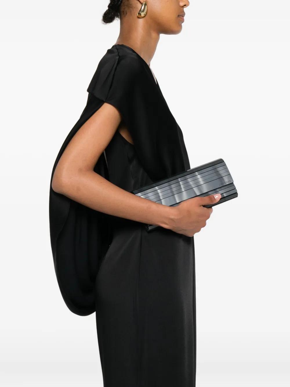 grey foldover top with magnetic fastening rectangular shape structured silhouette detachable chain-link strap