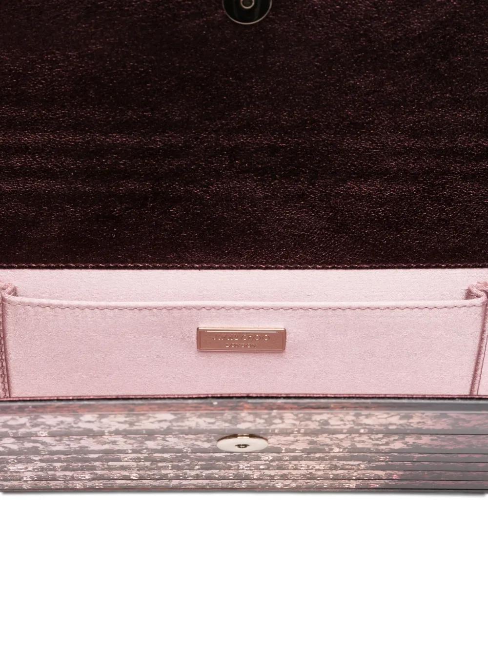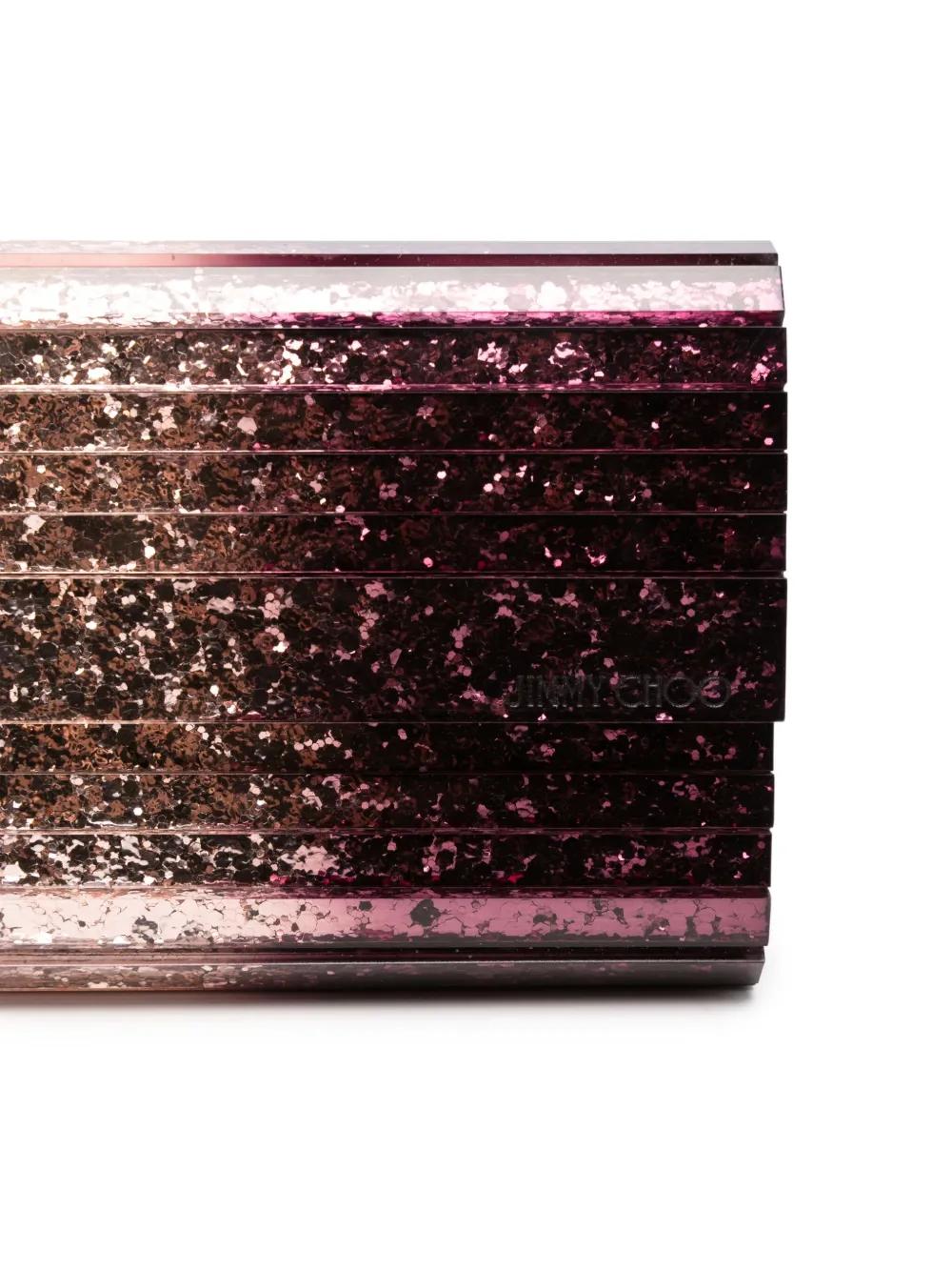 rose pink glitter embellishment ombre effect rectangular shape foldover top with magnetic fastening detachable chain-link shoulder strap