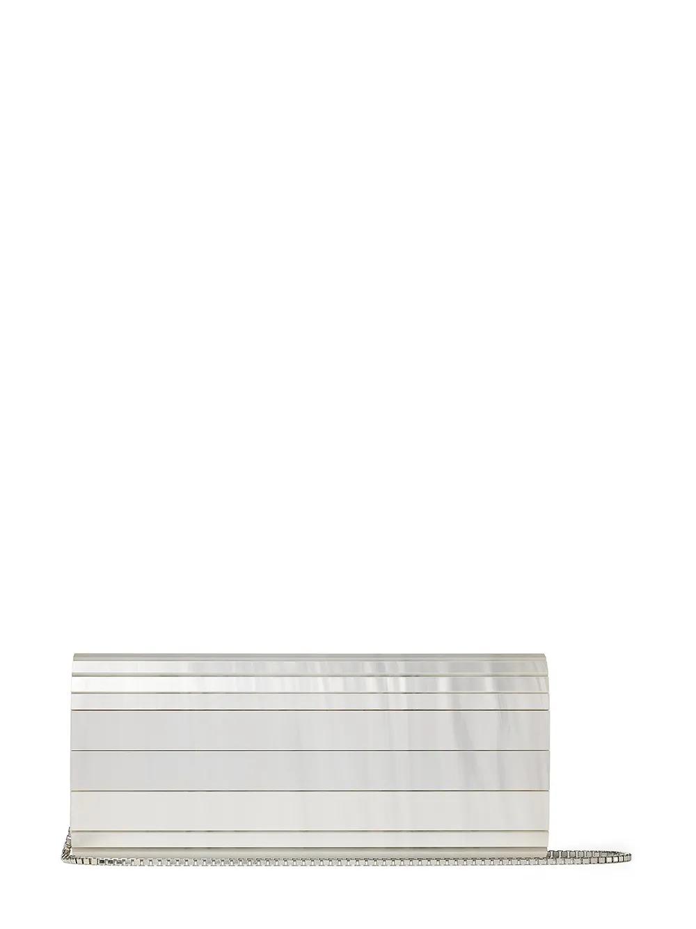 ivory white panelled design raised logo detail foldover top with magnetic fastening detachable shoulder strap internal slip pocket
