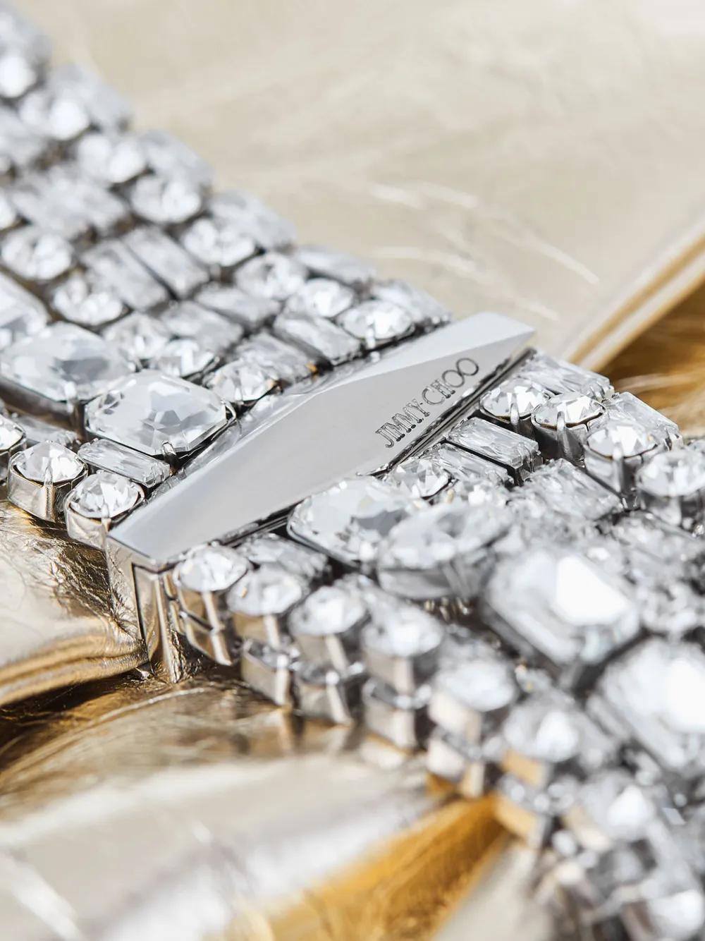 gold-tone textured finish rhinestone embellishment silk lining main compartment