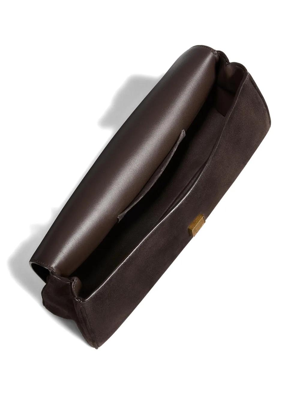 brown calf suede flap closure gold-tone hardware internal slip pocket