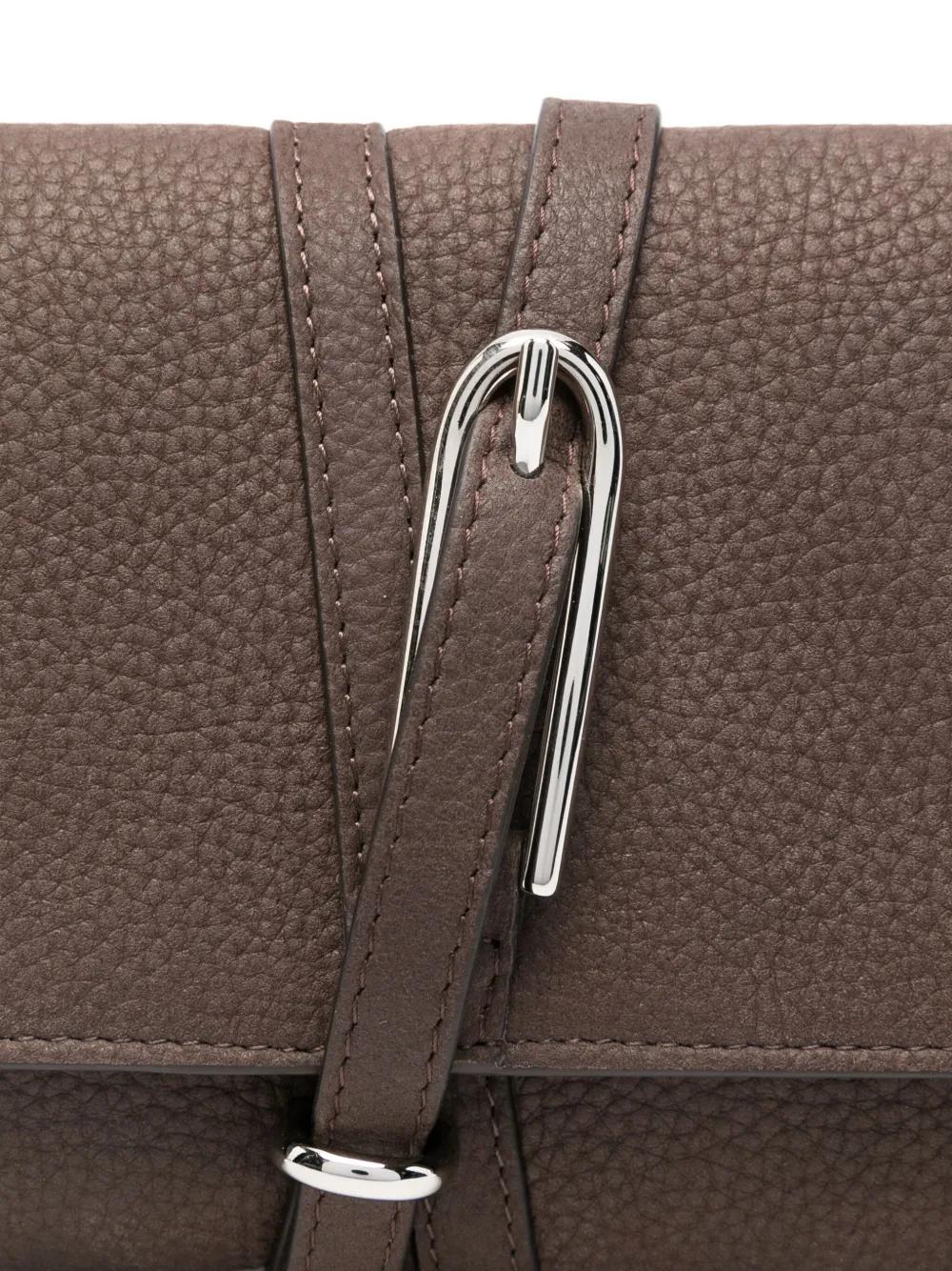 dark brown grained texture foldover top silver-tone hardware internal card slots strap detail