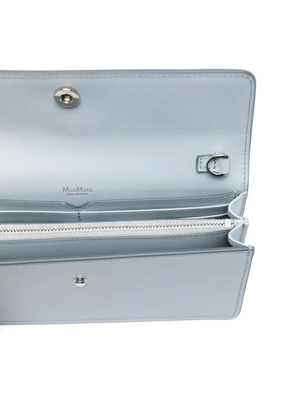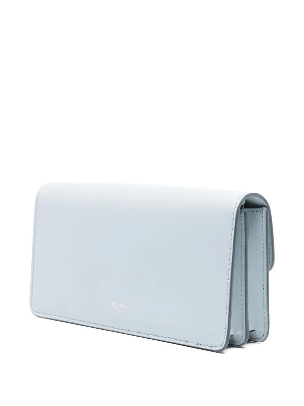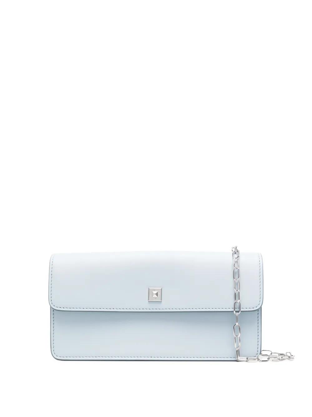light blue calf leather square-shaped clasp chain strap flap closure minimalist design