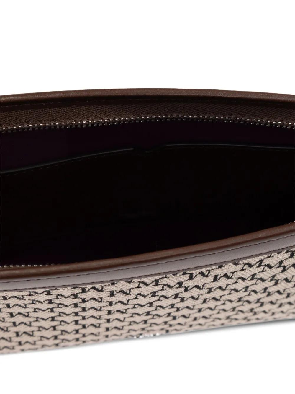 beige top zip fastening monogram pattern rectangle shape internal slip pocket