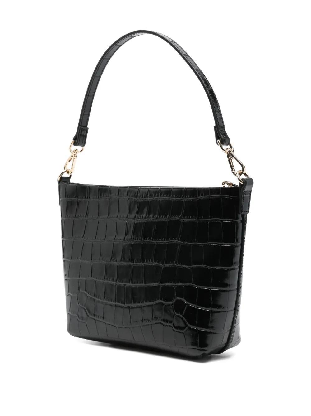 black crocodile effect top handle shoulder strap gold-tone hardware zip fastening