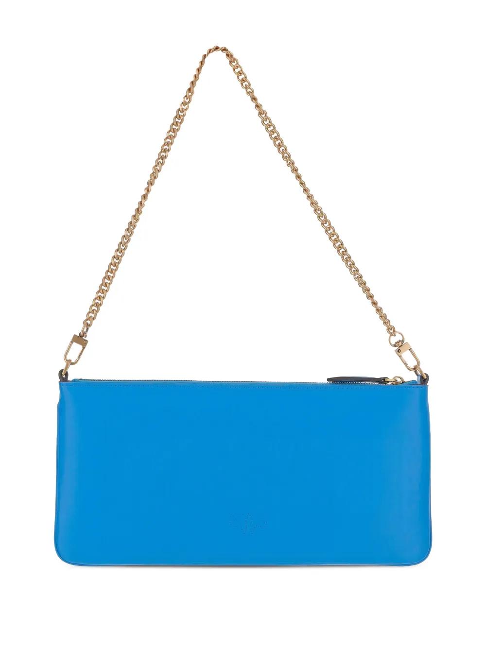 azure blue leather construction zip fastening gold-tone metal chain strap logo detail