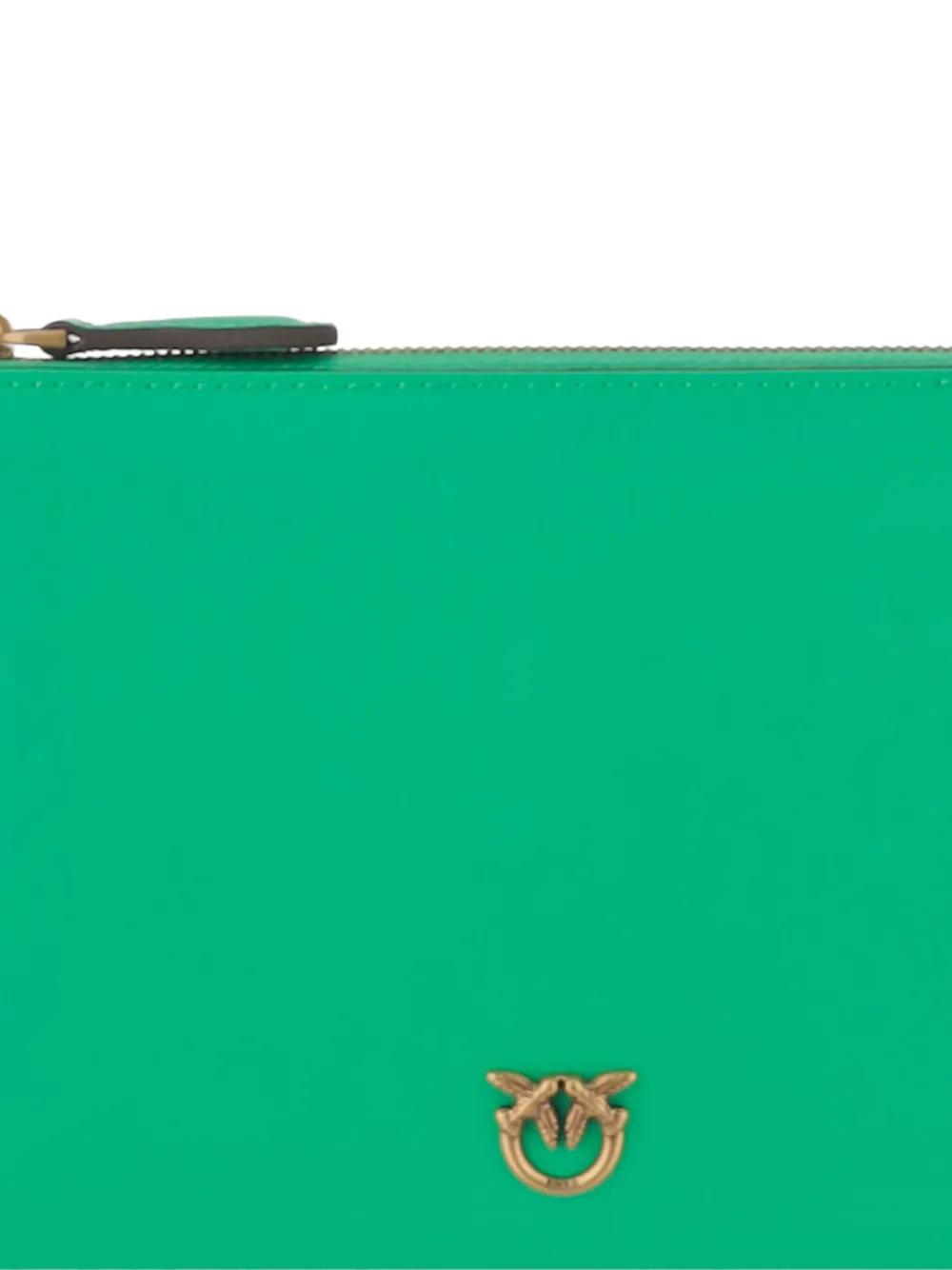 green zip fastening detachable shoulder strap gold-tone logo plaque rectangular shape