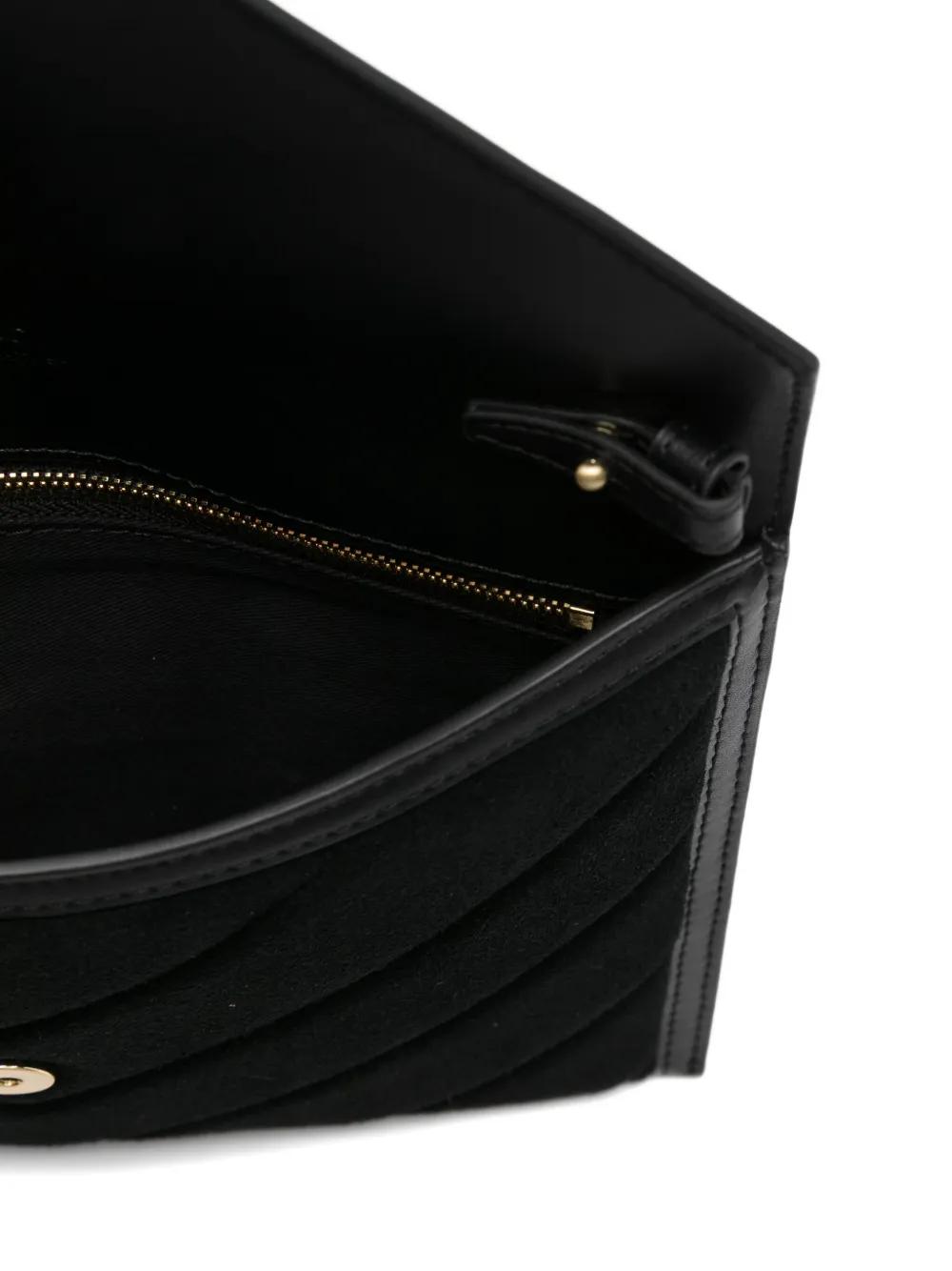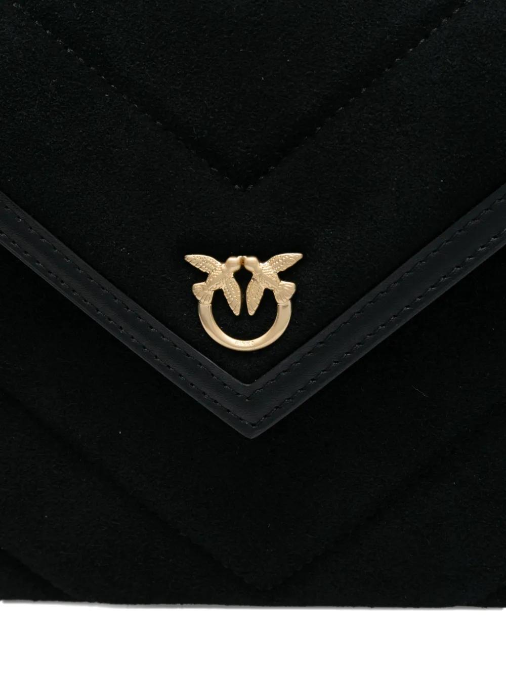 black suede quilted gold-tone hardware flap closure detachable chain strap detachable wrist strap
