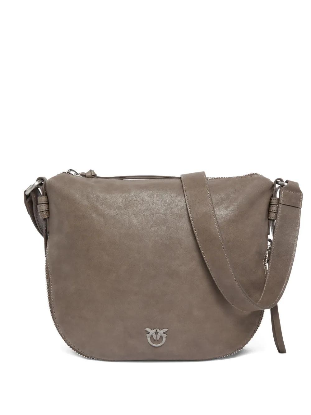 beige bovine leather zip fastening curved silhouette silver-tone logo adjustable strap