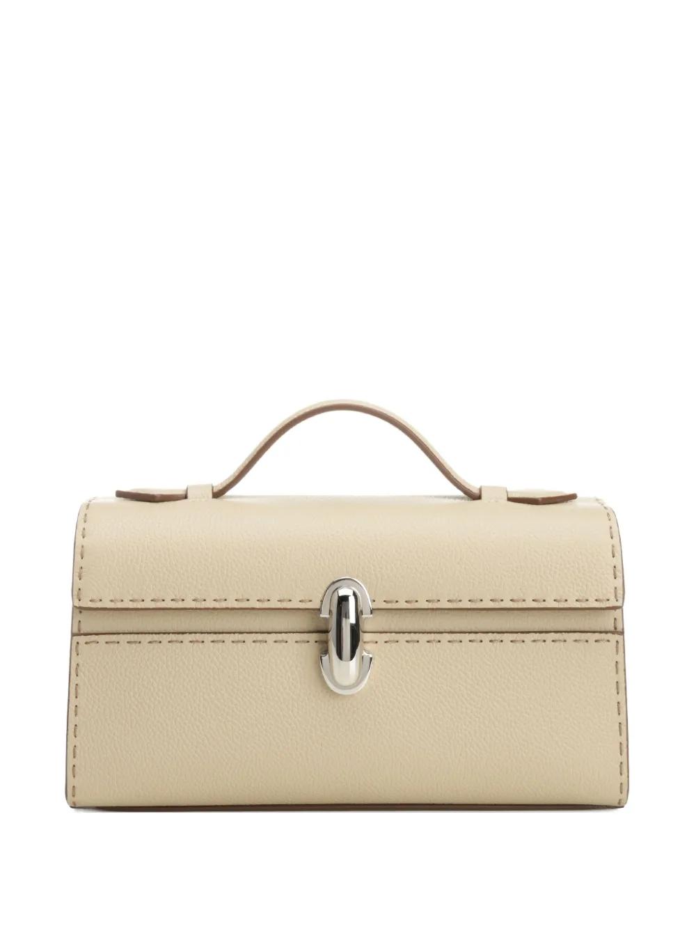 beige top handle clasp fastening This piece comes complete with a protective dust bag.