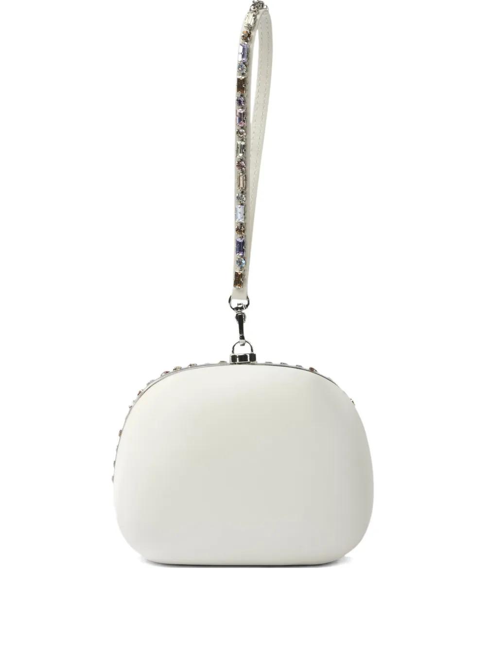 white cow leather multicoloured crystal embellishment clasp fastening round shape detachable wrist strap