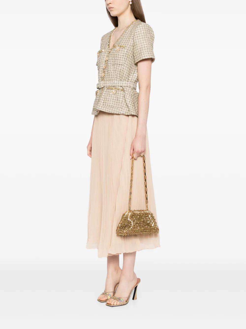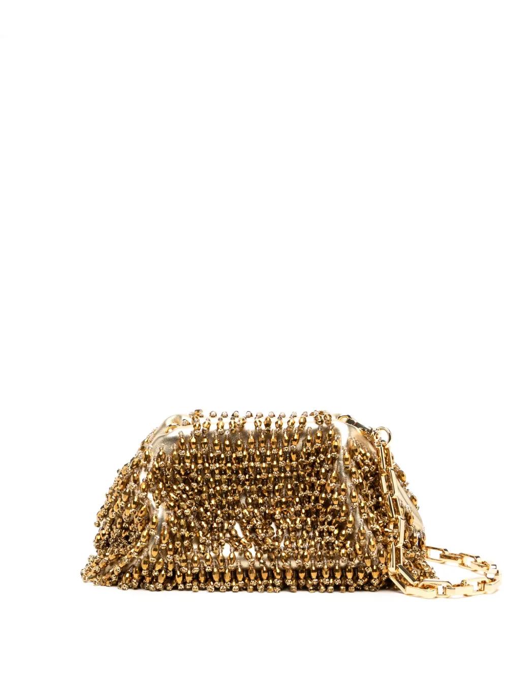 gold crystal embellishment chain-link shoulder strap gold-tone hardware main compartment full lining internal logo patch