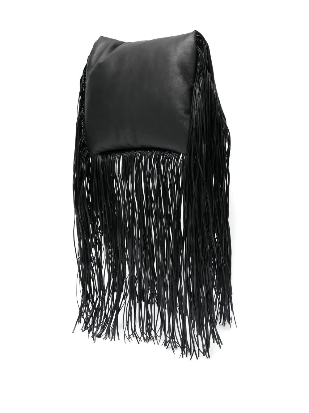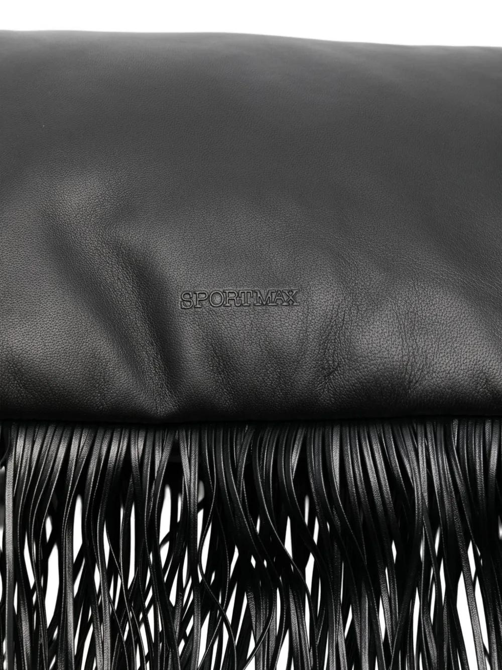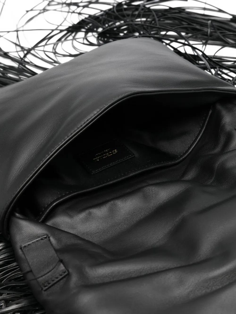 black fringed trim nappa leather detachable adjustable shouder strap concealed press-stud fastening