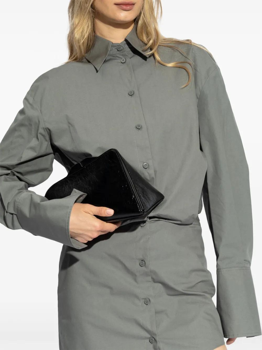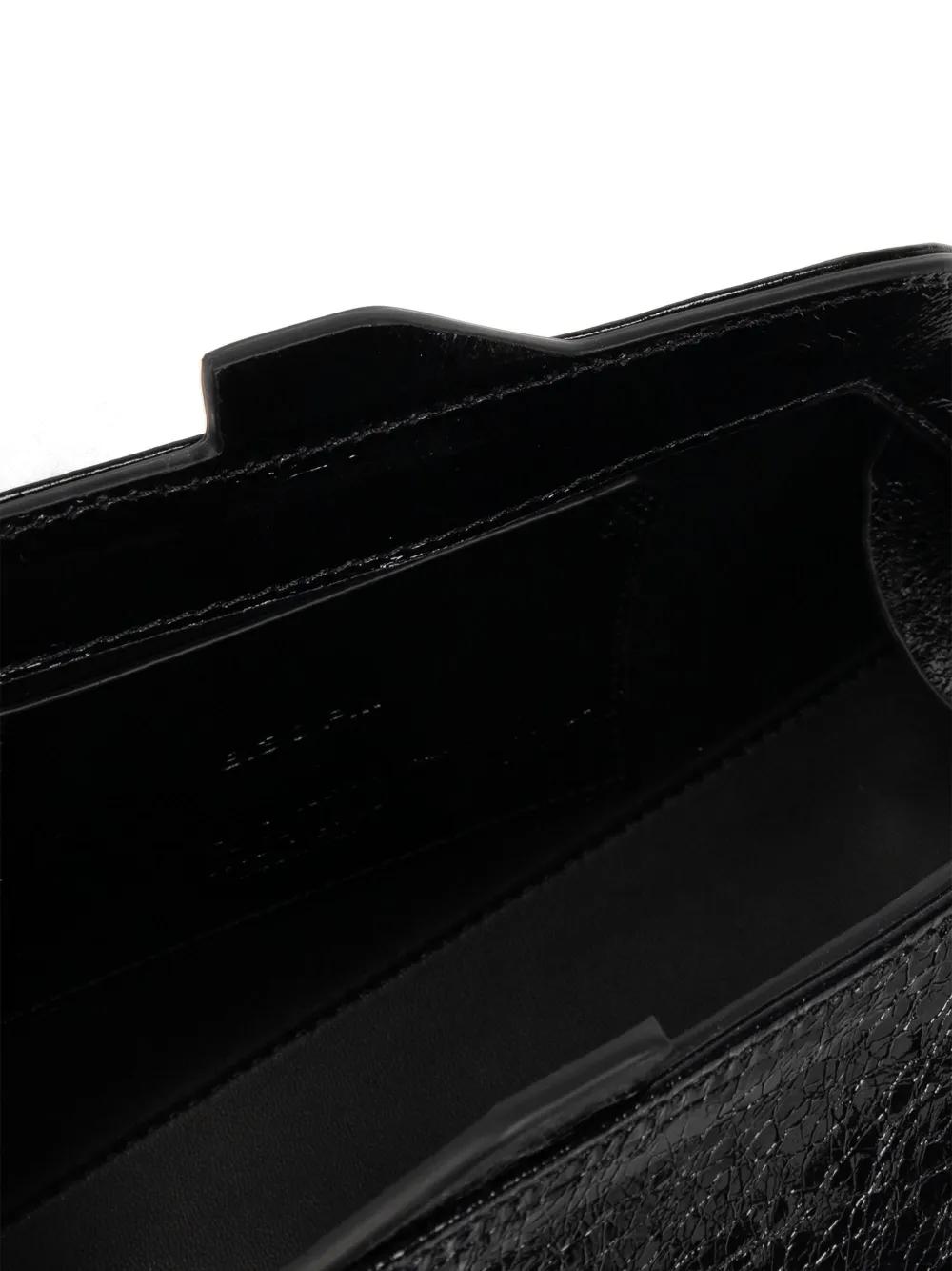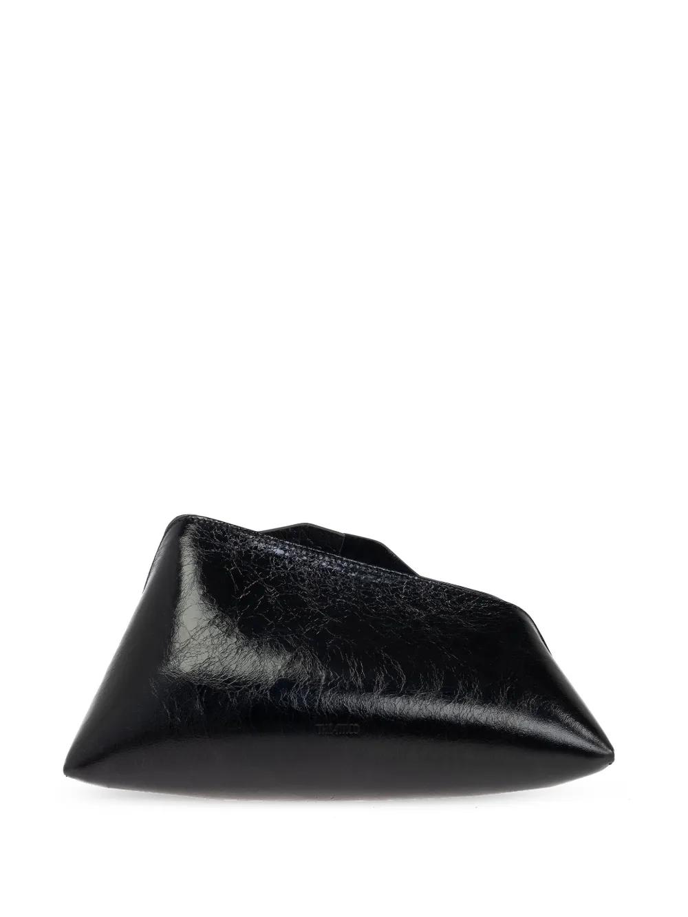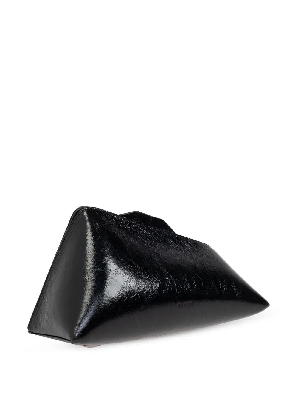 black lambskin grained texture geometric body concealed magnetic fastening main compartment internal slip pocket