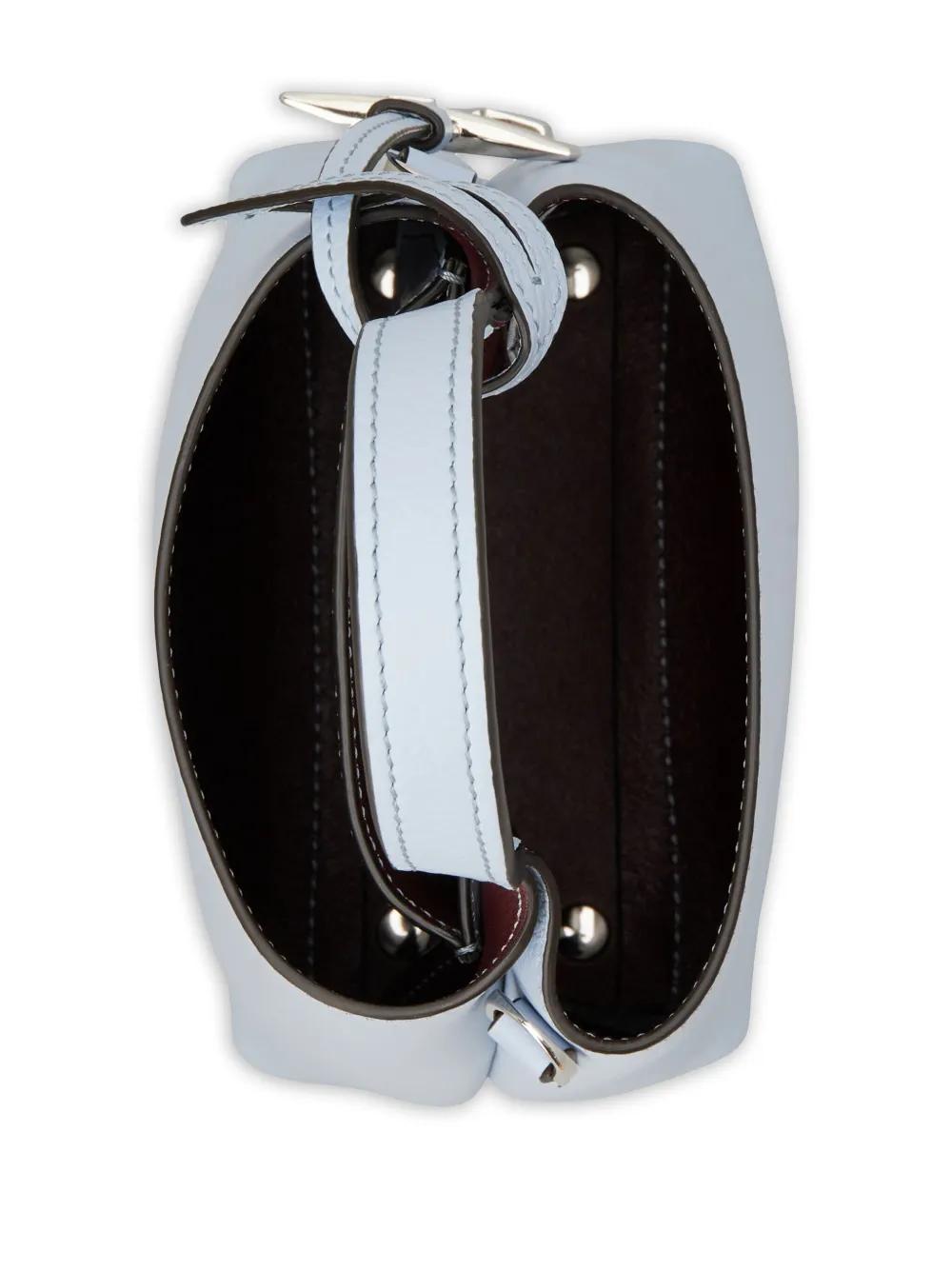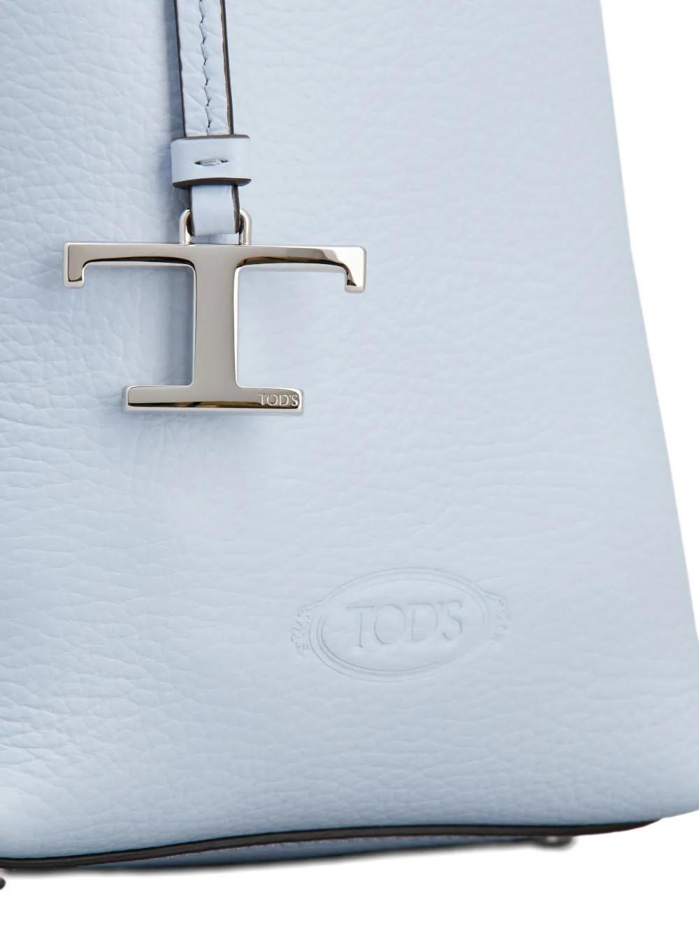 light blue pebble-leather texture top handle T-logo charm silver-tone hardware metal feet