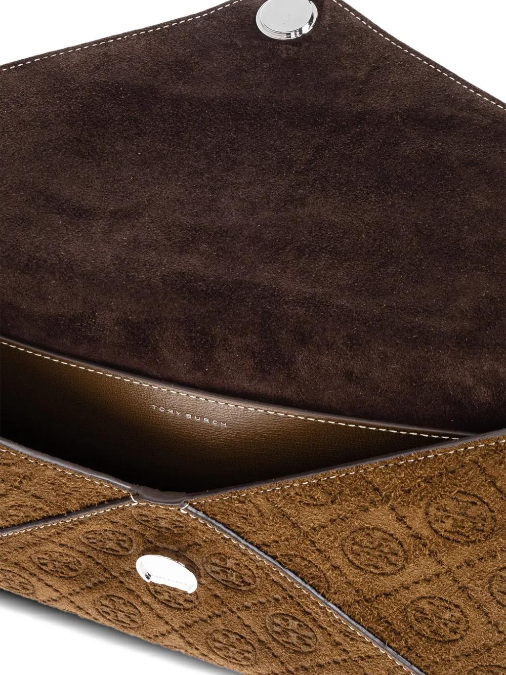 Tory Burch logo-monogram clutch - Brown