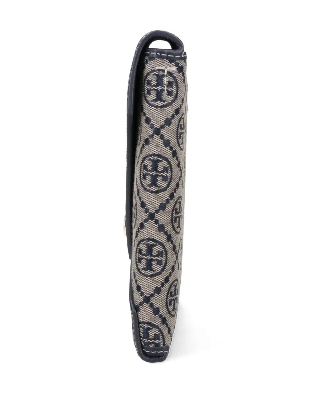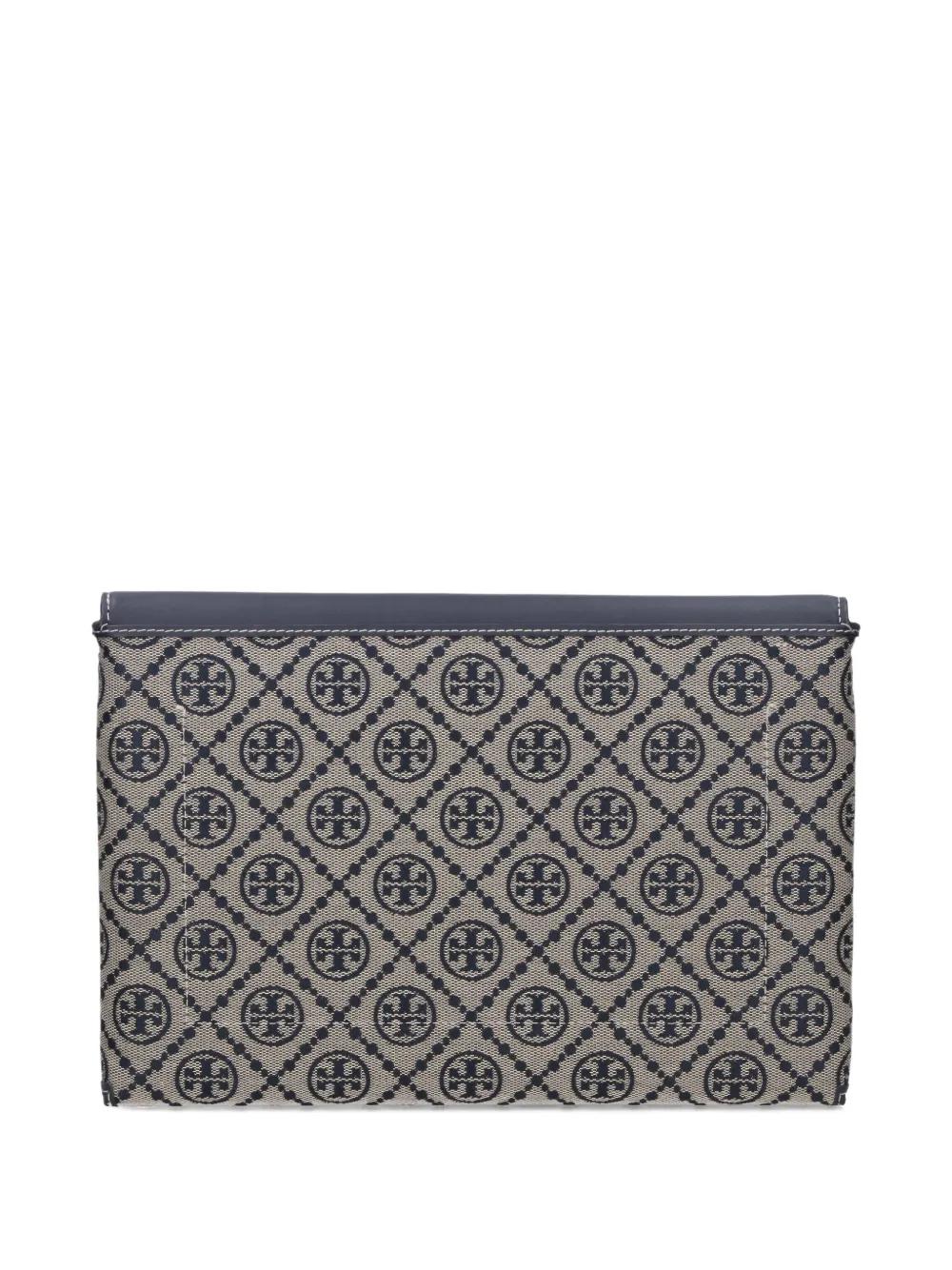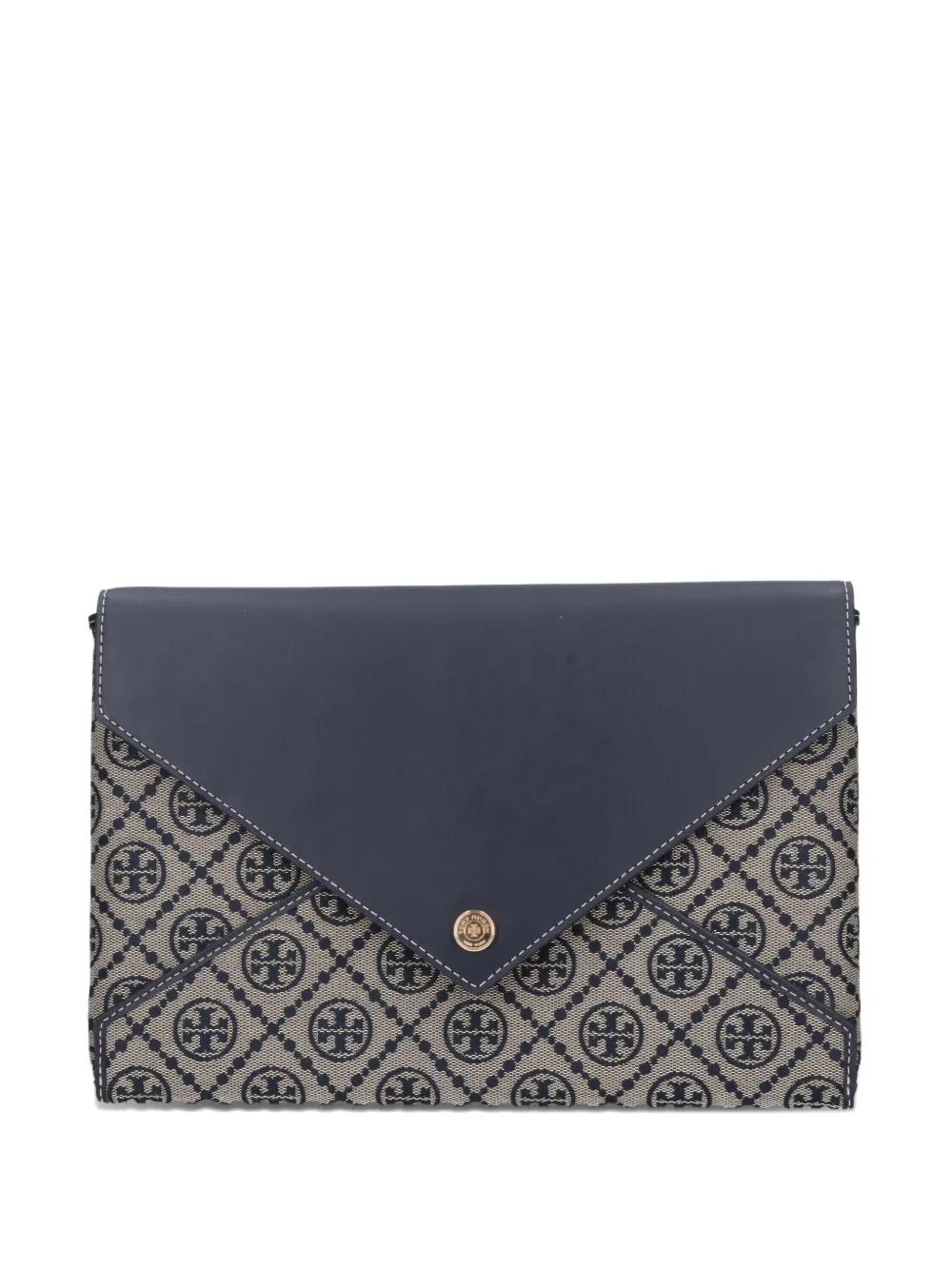 blue monogram pattern flap closure gold-tone press stud chain strap envelope shape