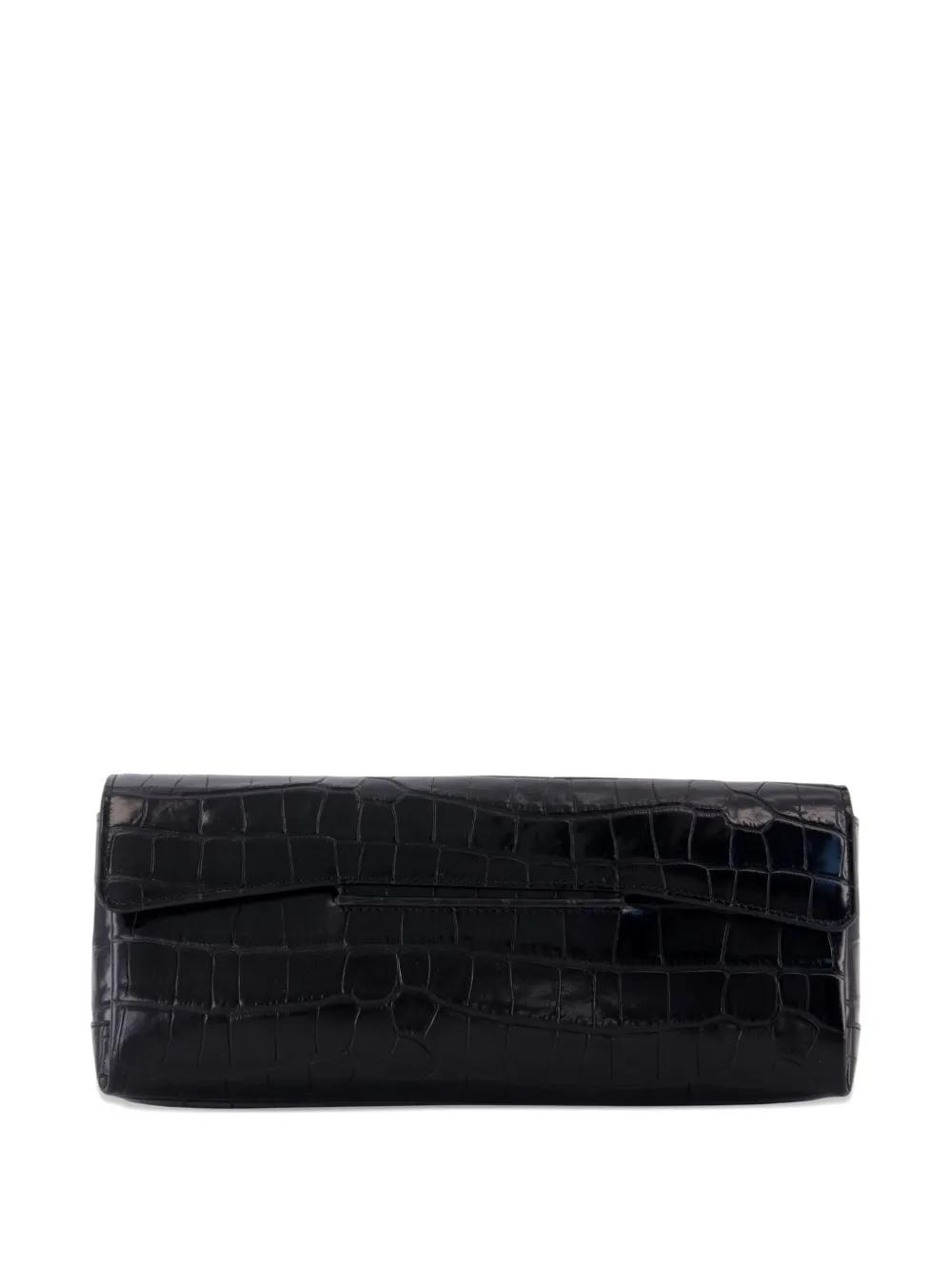 TOTEME croc-embossed flap clutch bag - Black