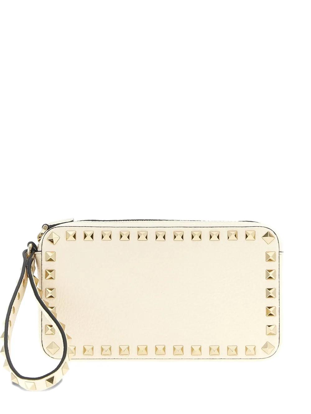 Valentino Garavani Ruckstud wrist-strap clutch bag - Neutrals