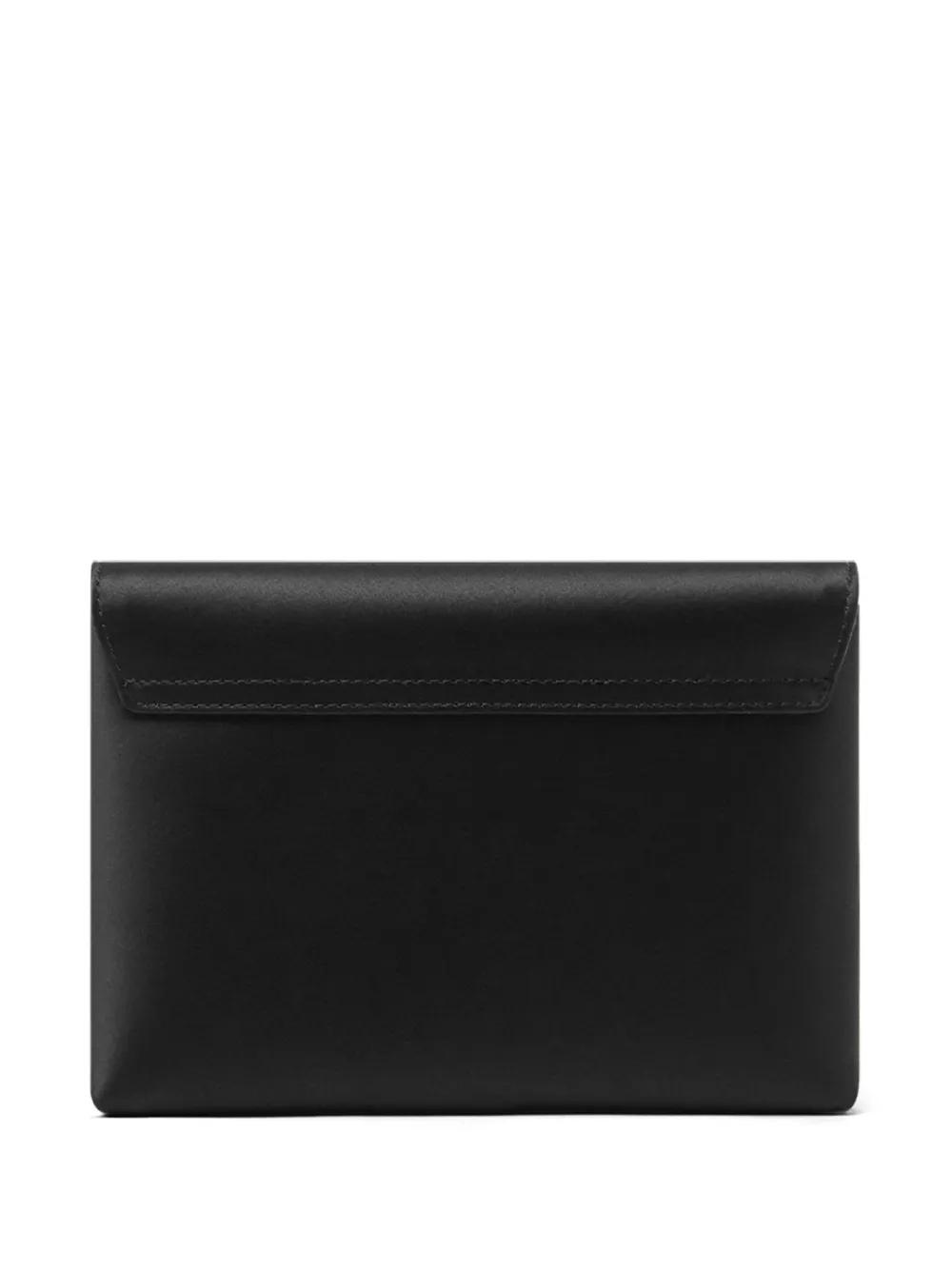 black satin finish Medusa plaque detail detachable chain-link shoulder strap foldover top with magnetic fastening main compartment internal slip pocket leather lining gold-tone hardware