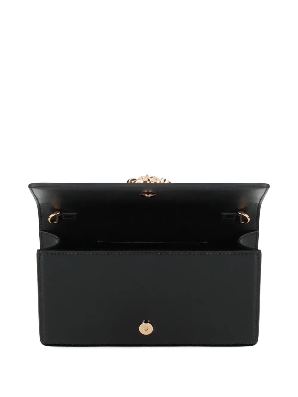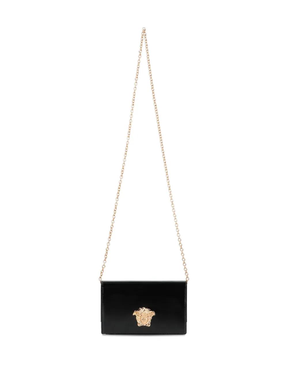 black patent leather gold-tone hardware removable chain strap flap closure internal pocket
