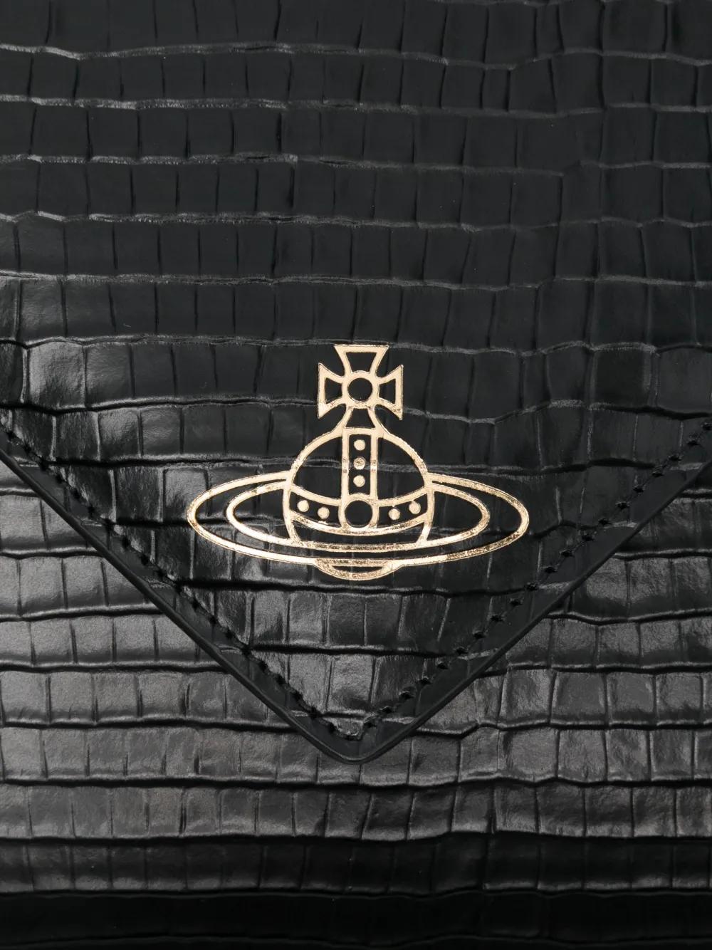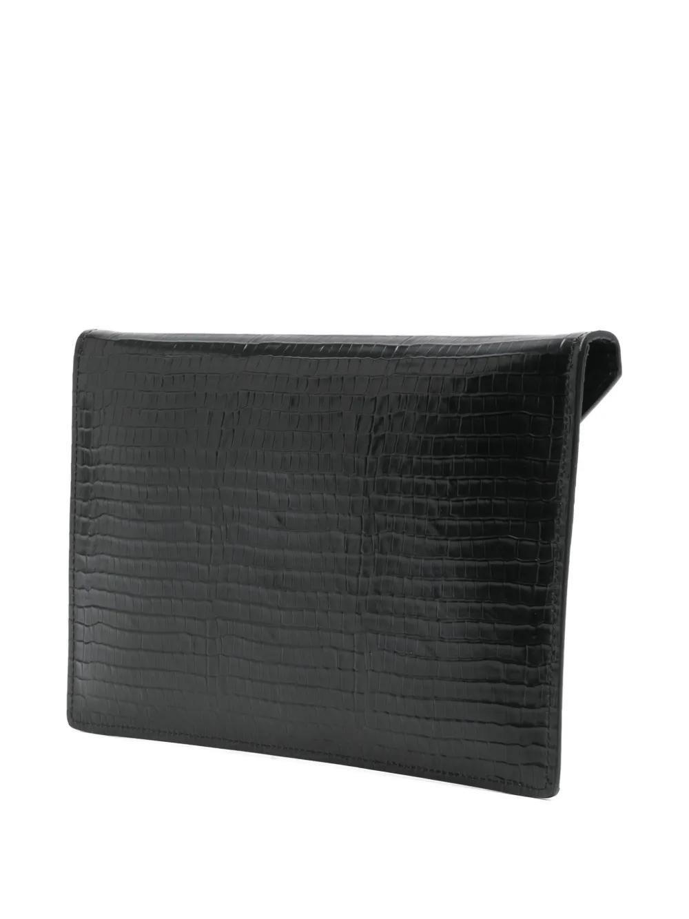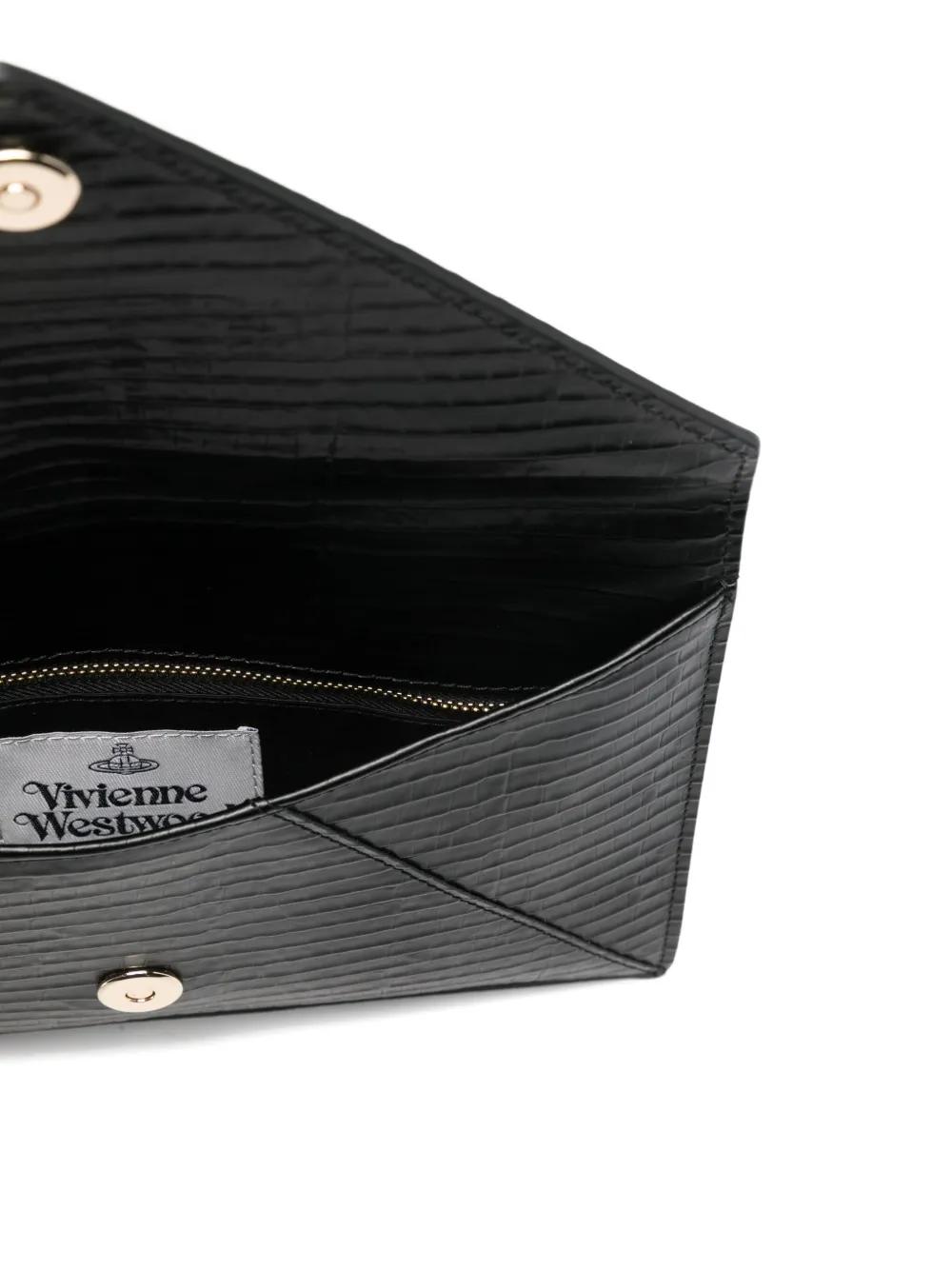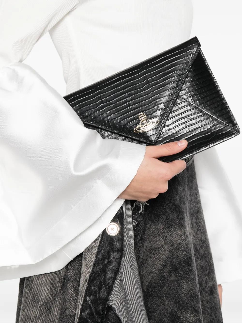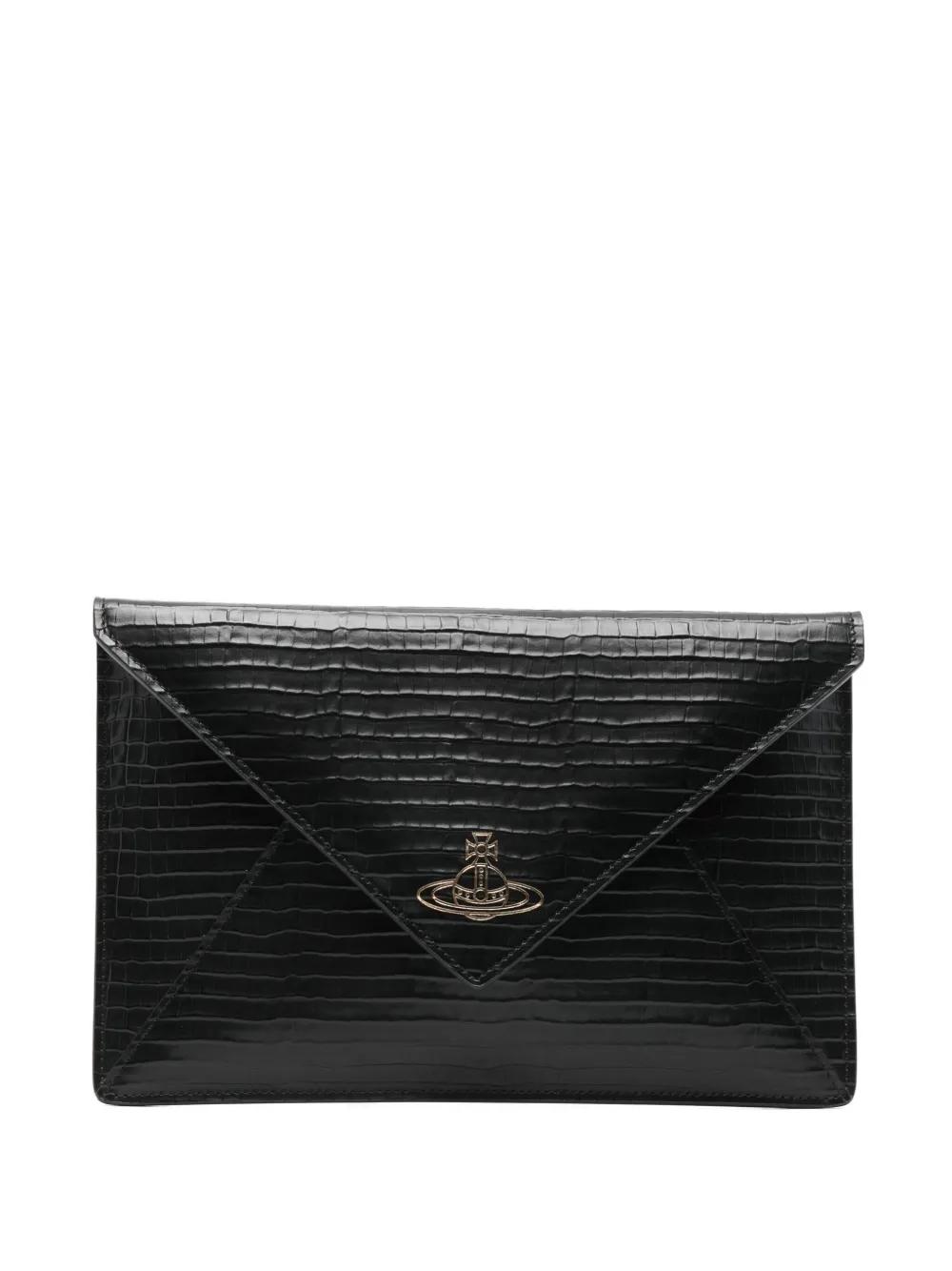 black leather orb print gold-tone detail envelope style press-stud fastening This piece comes complete with a protective dust bag.