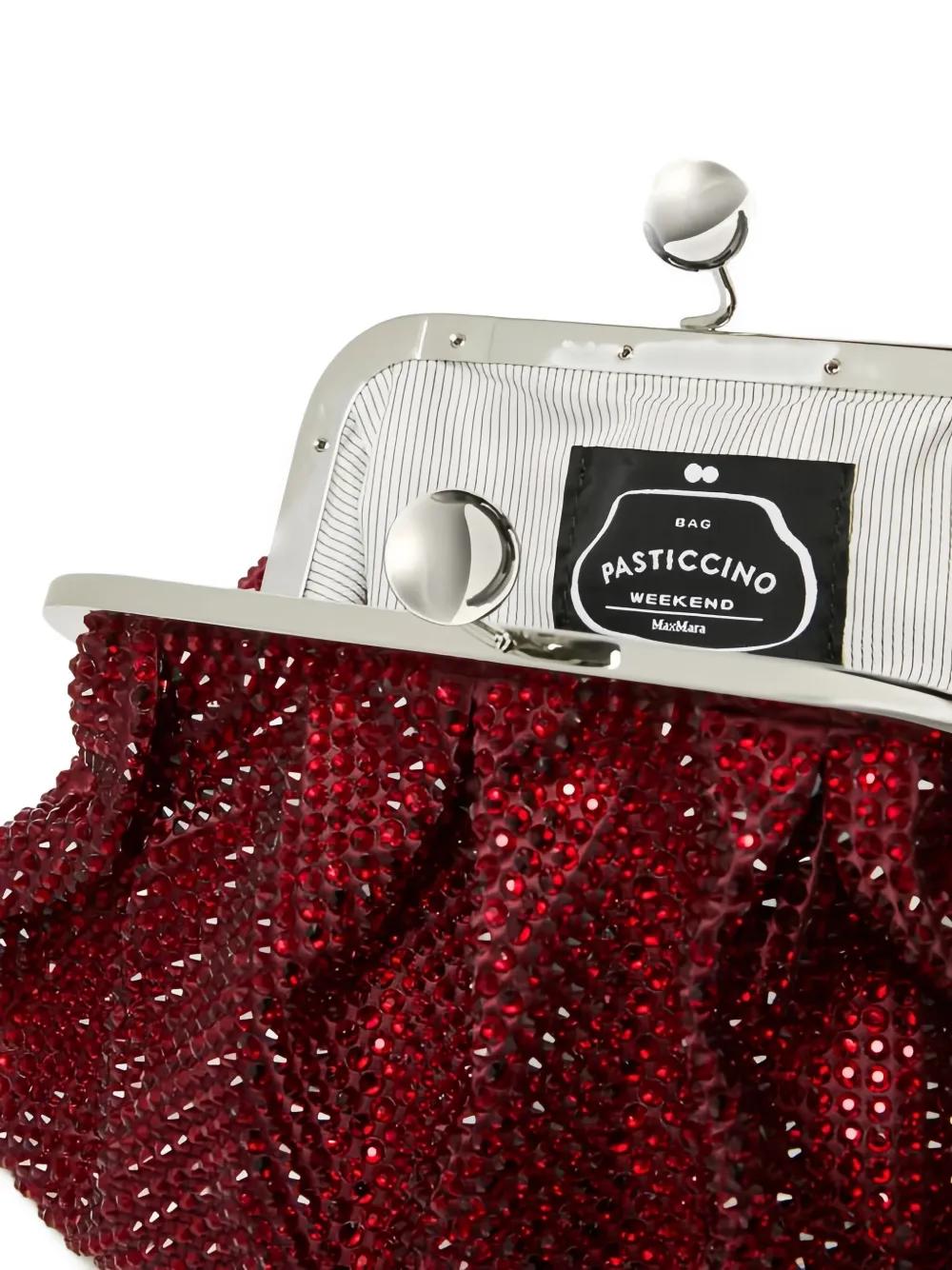 dark red crystal embellishment frame closure gathered detailing silver-tone metal hardware