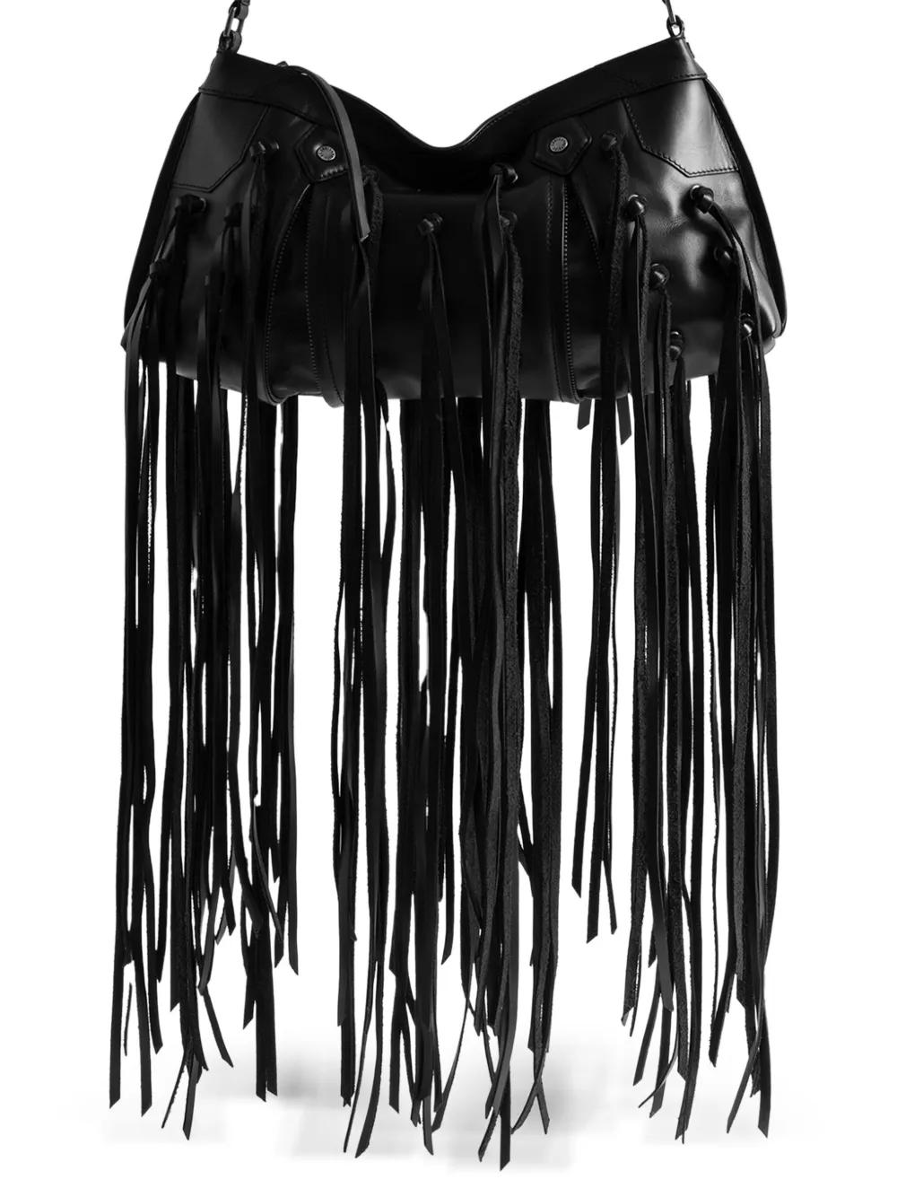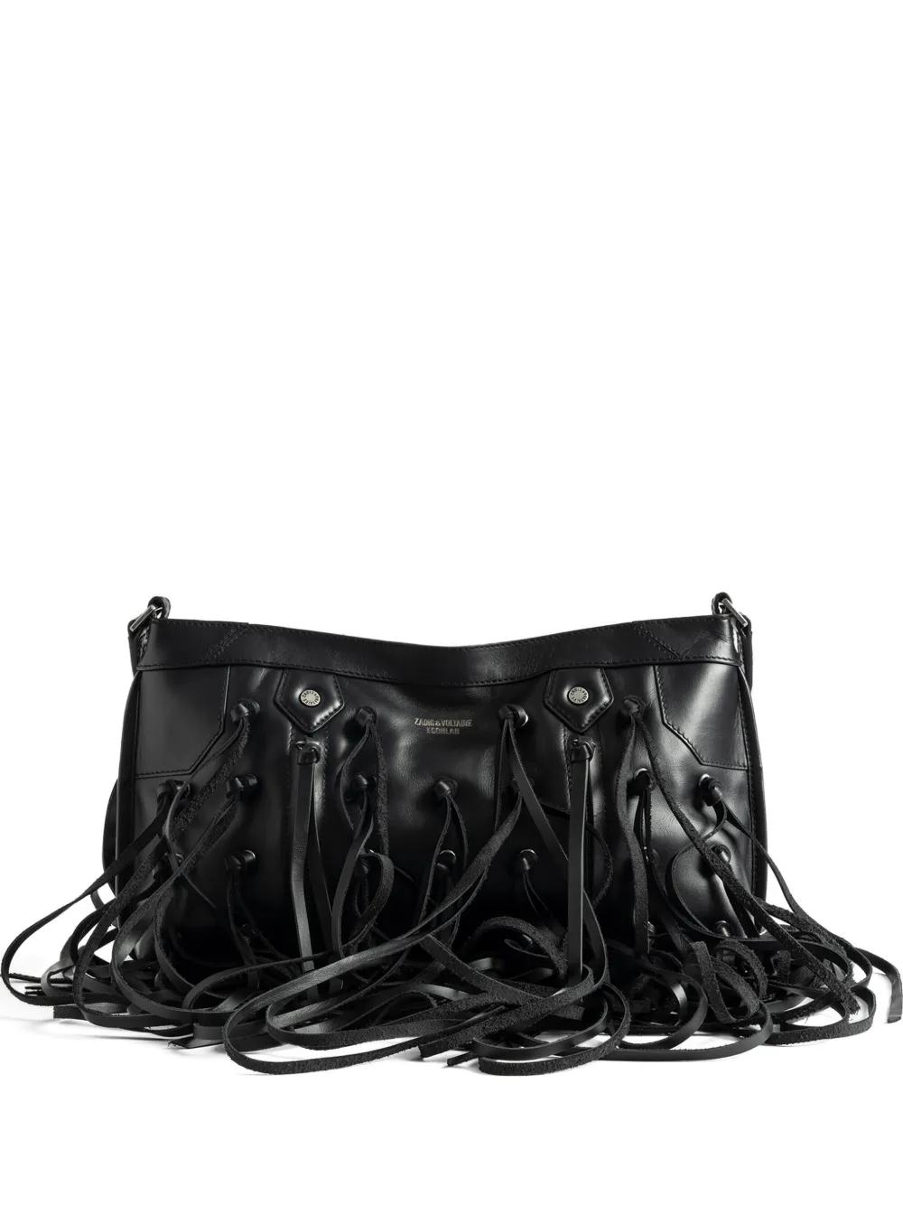 Zadig&Voltaire leather-fringe clutch bag - Black