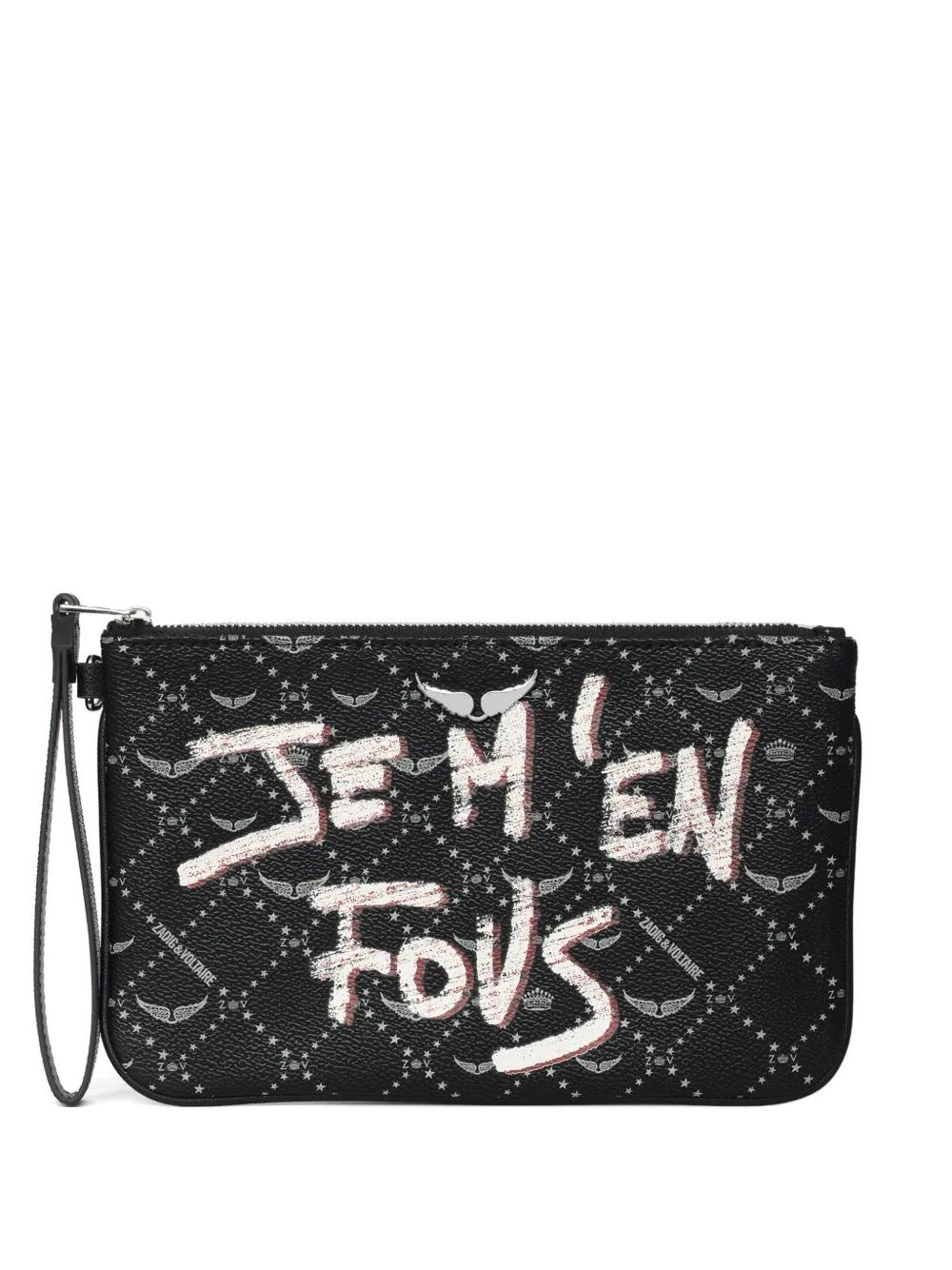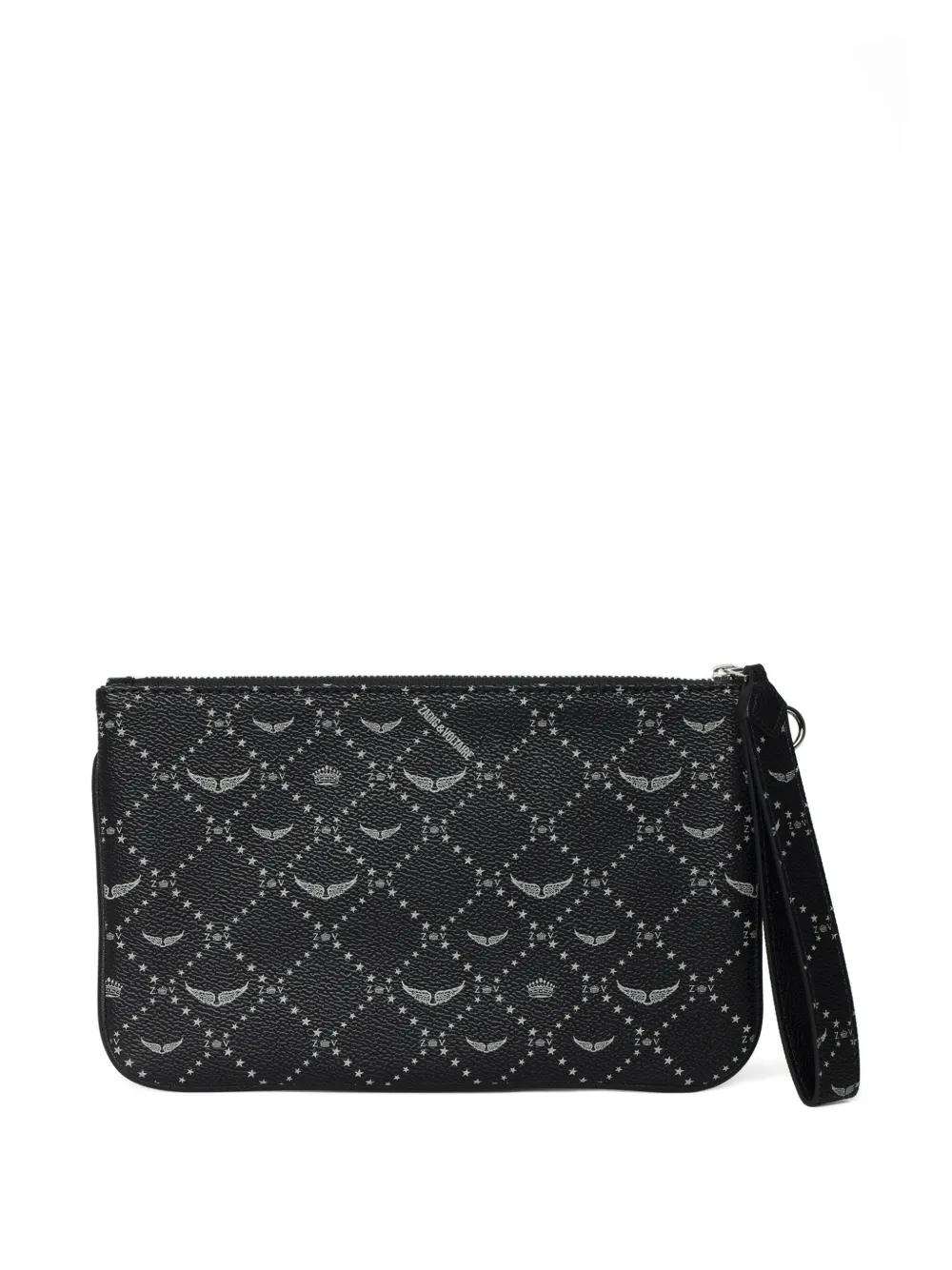 black leather and chain-link shoulder strap foldover top with magnetic fastening two-way zip fastening rear zip-fastening pocket