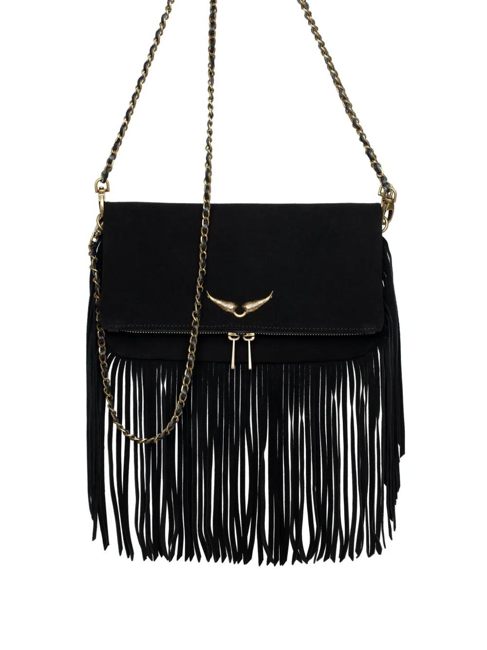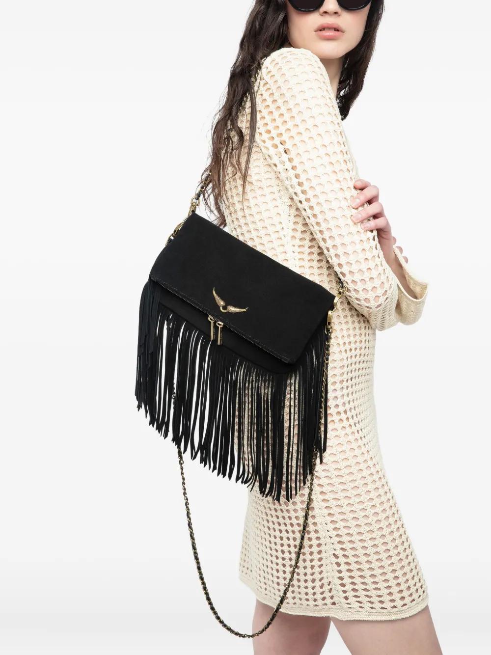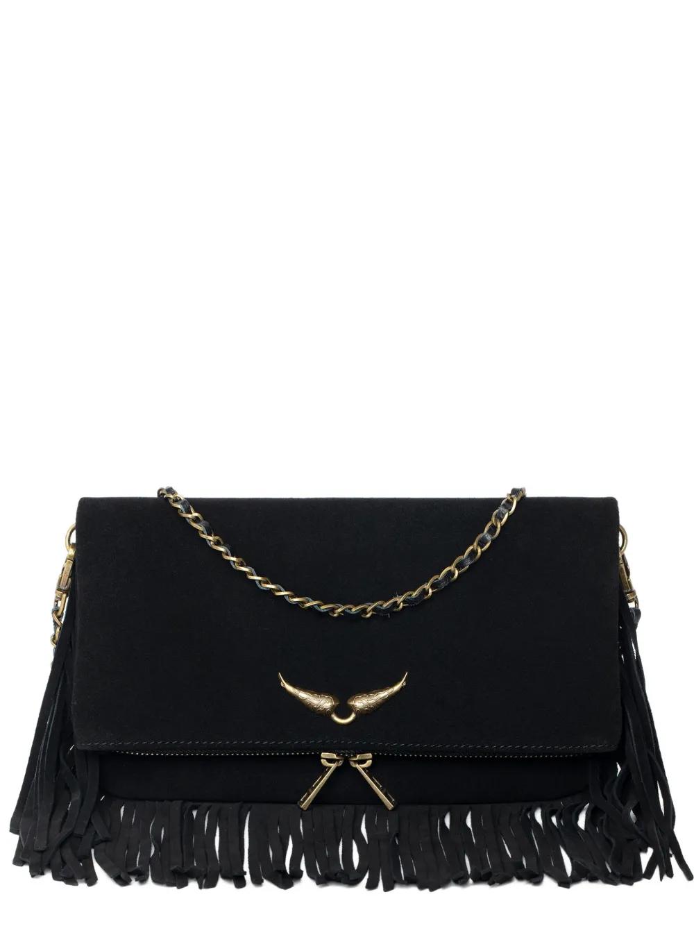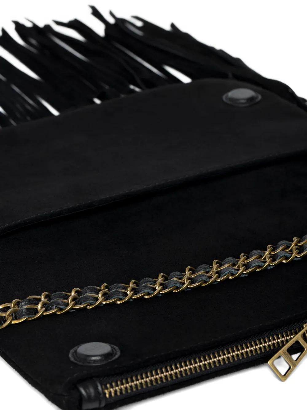 black two-way zip fastening foldover top with magnetic fastening detachable chain-link shoulder strap detachable leather and chain-link shoulder strap