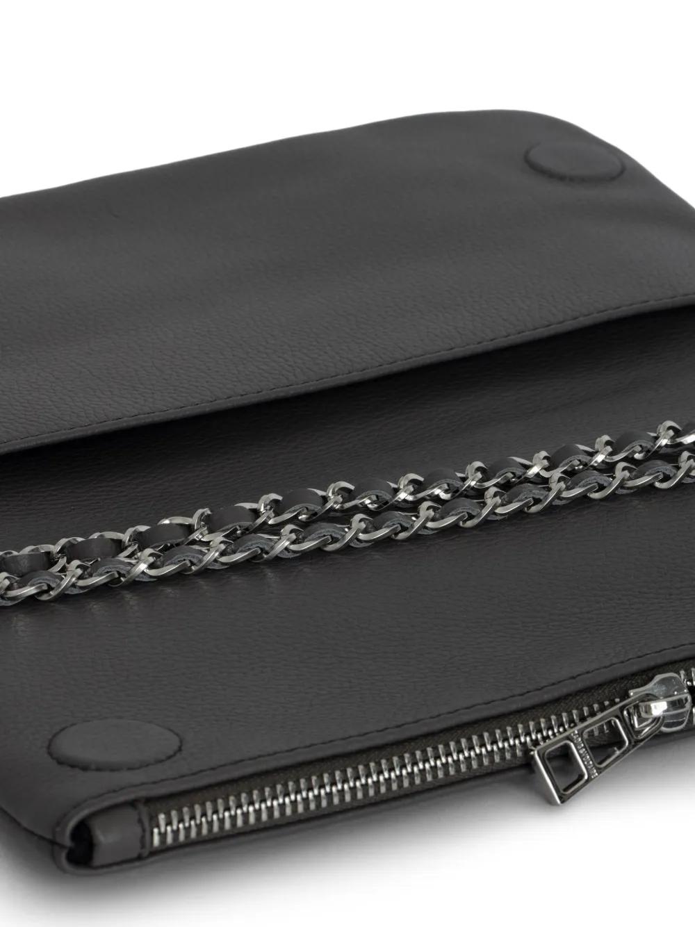 grey calf leather grained texture tonal logo plaque crystal embellishment detachable leather and chain-link shoulder strap foldover top with magnetic fastening two-way zip fastening main compartment internal logo patch full lining slip pocket to the front rear zip-fastening pocket gunmetal-tone hardware