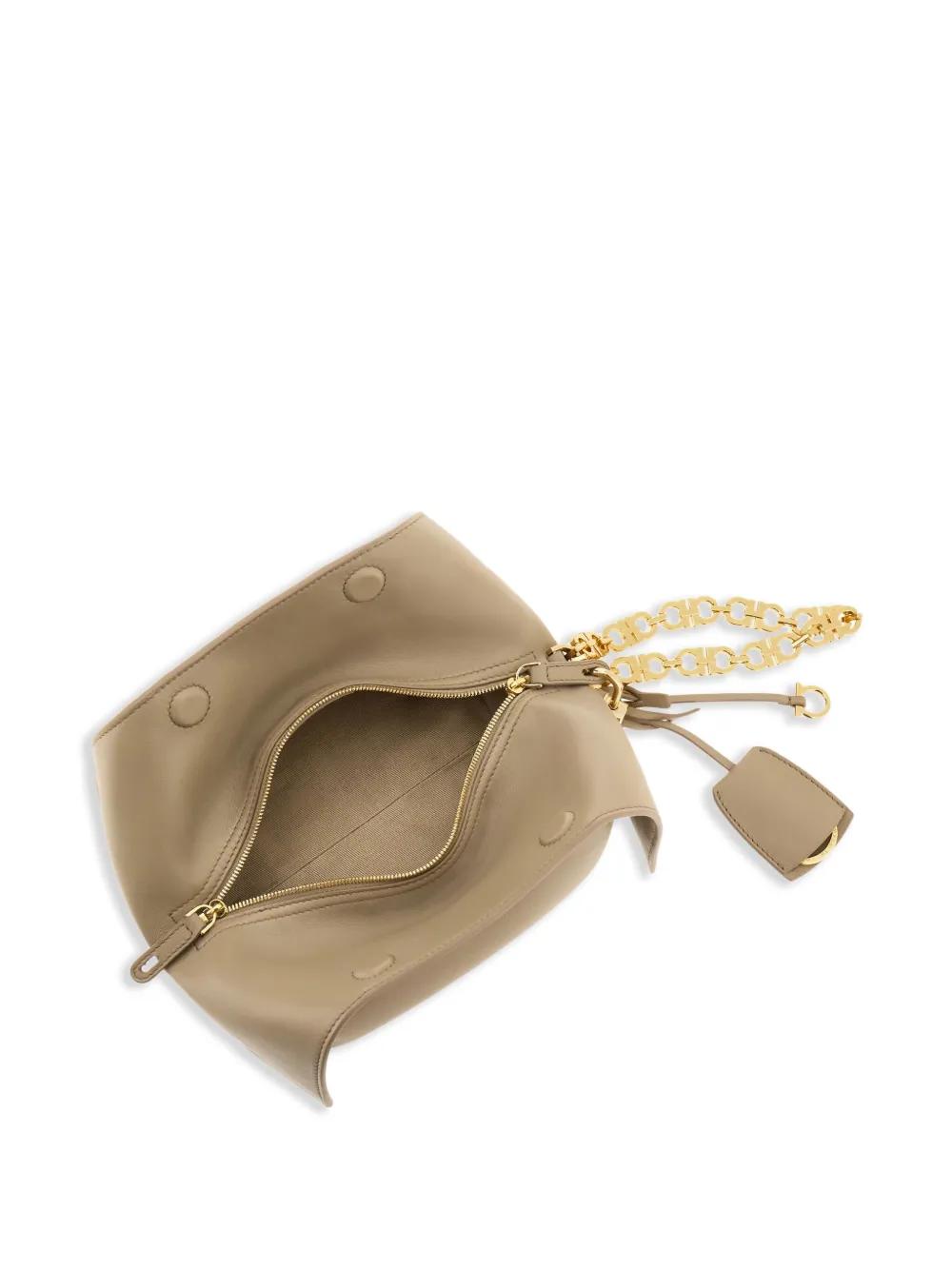 beige GG Monogram Double G emblem silver-tone logo plaque zip fastening top zip closure