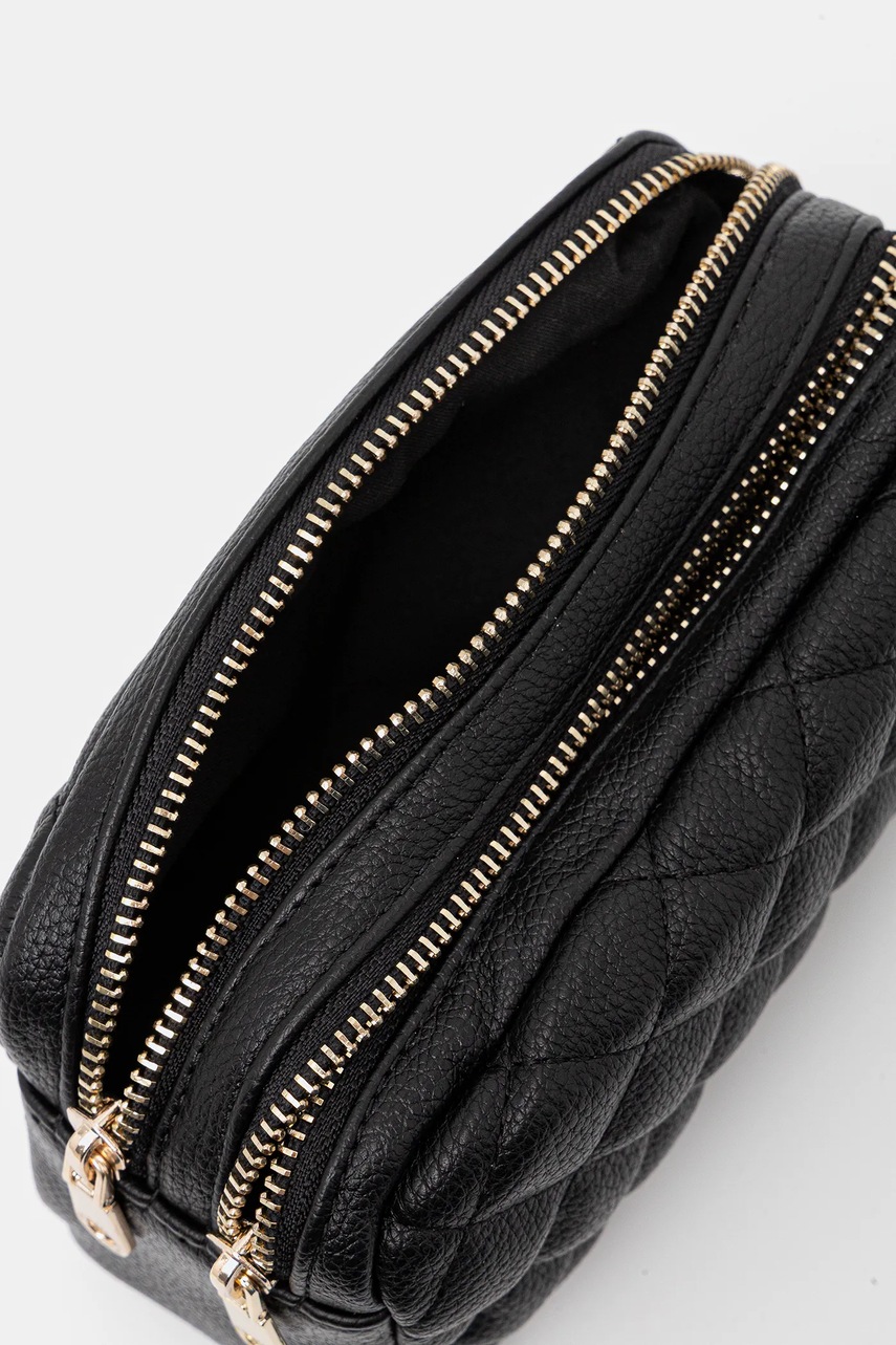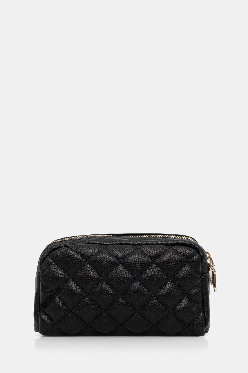 - Dwie przegrody zapinane na suwak. - Model nie posiada kieszeni wewnętrznych. - Model z podszewką. - Nie mieści formatu A4. - Głębokość: 7,5 cm. - Wysokość: 11 cm. - Szerokość u podstawy: 18 cm.